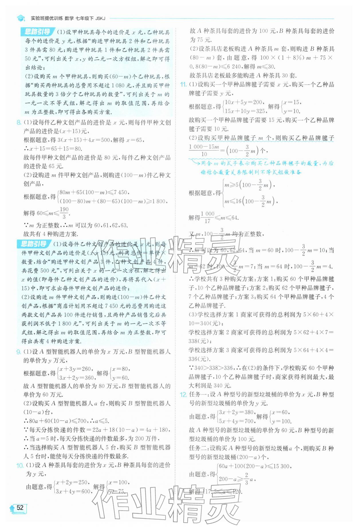 2026年实验班提优训练七年级数学下册苏科版参考答案第52页