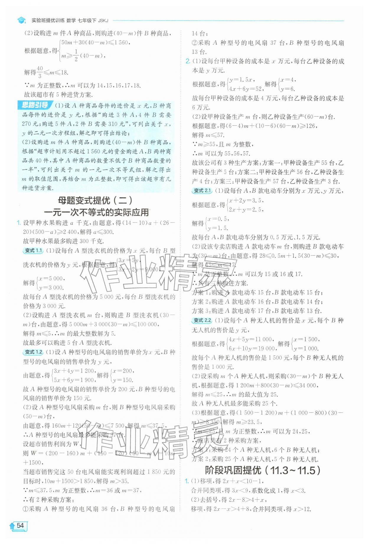 2026年实验班提优训练七年级数学下册苏科版参考答案第54页