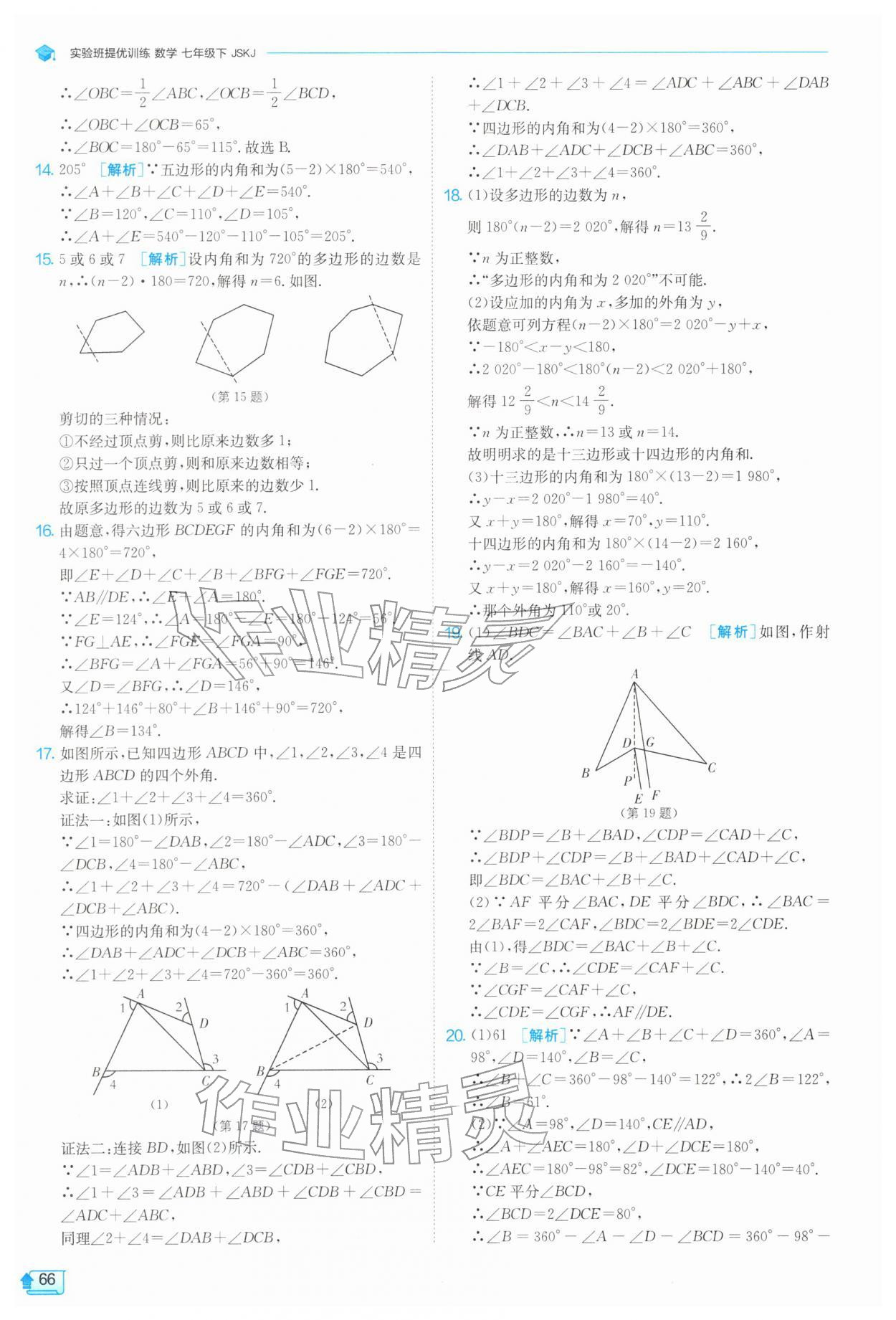 2026年实验班提优训练七年级数学下册苏科版参考答案第66页