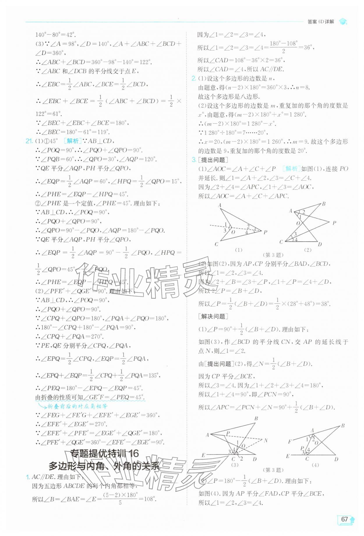 2026年实验班提优训练七年级数学下册苏科版参考答案第67页