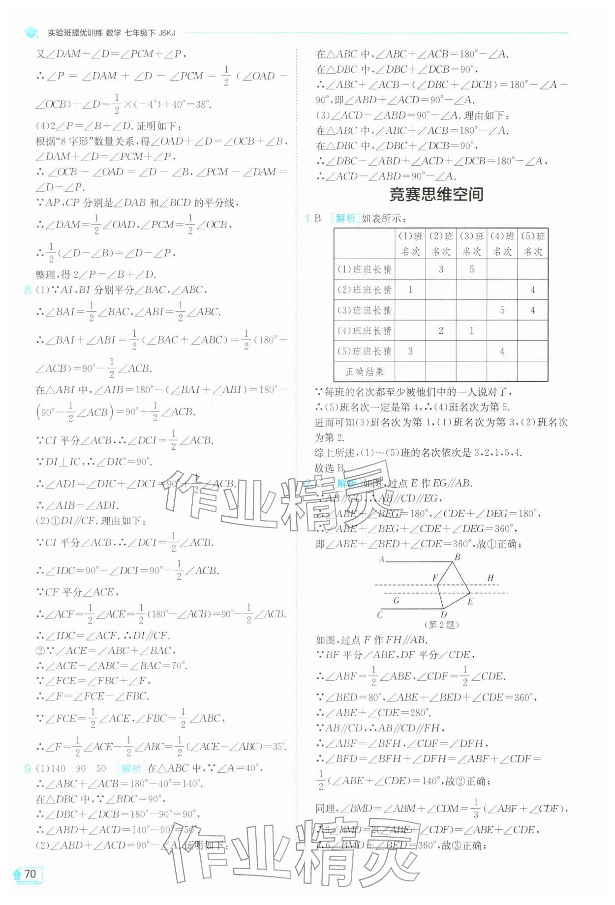 2026年实验班提优训练七年级数学下册苏科版参考答案第70页