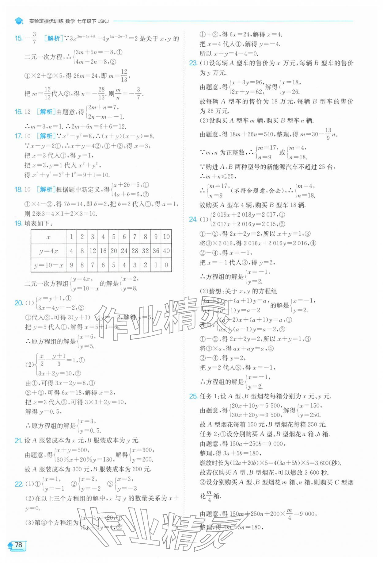 2026年实验班提优训练七年级数学下册苏科版参考答案第78页