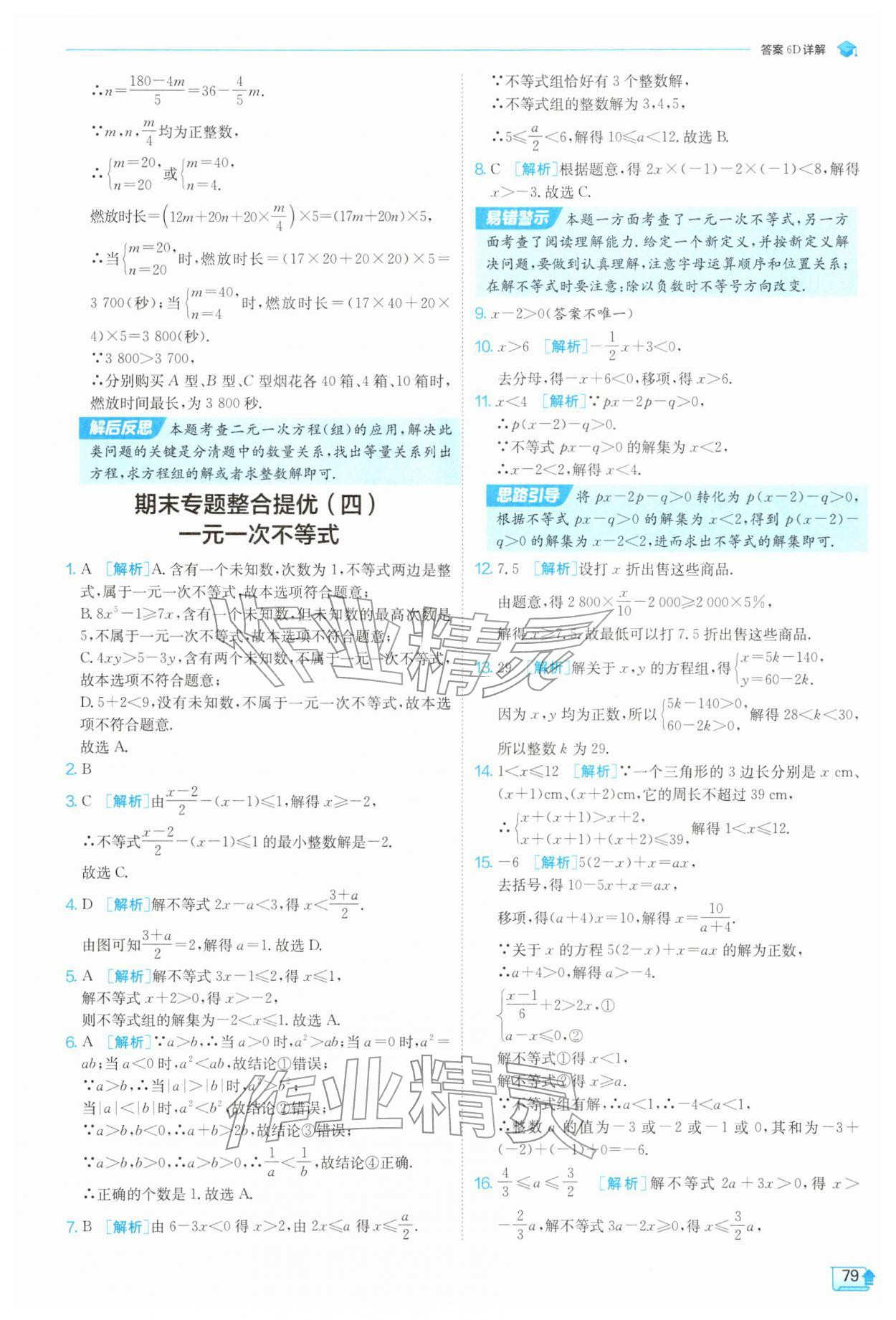 2026年实验班提优训练七年级数学下册苏科版参考答案第79页