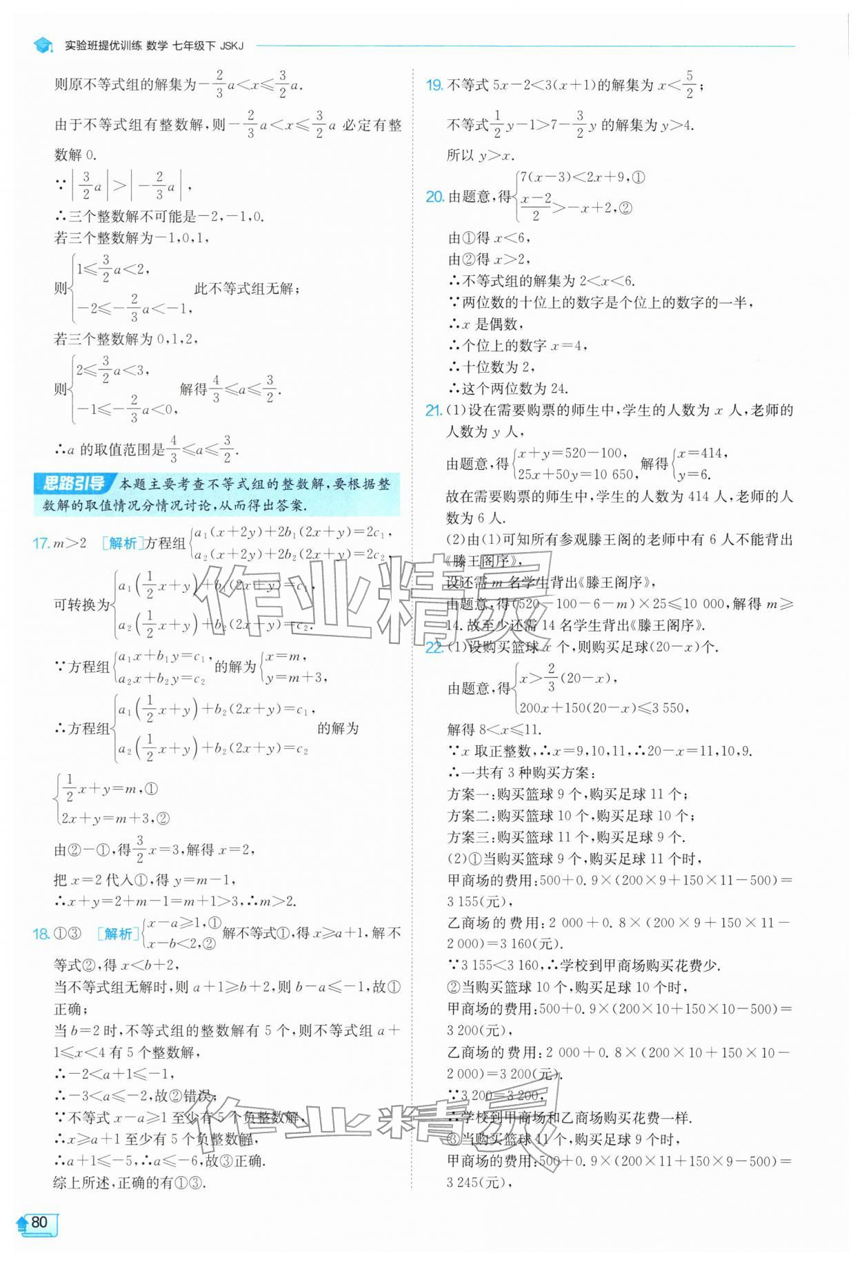 2026年实验班提优训练七年级数学下册苏科版参考答案第80页