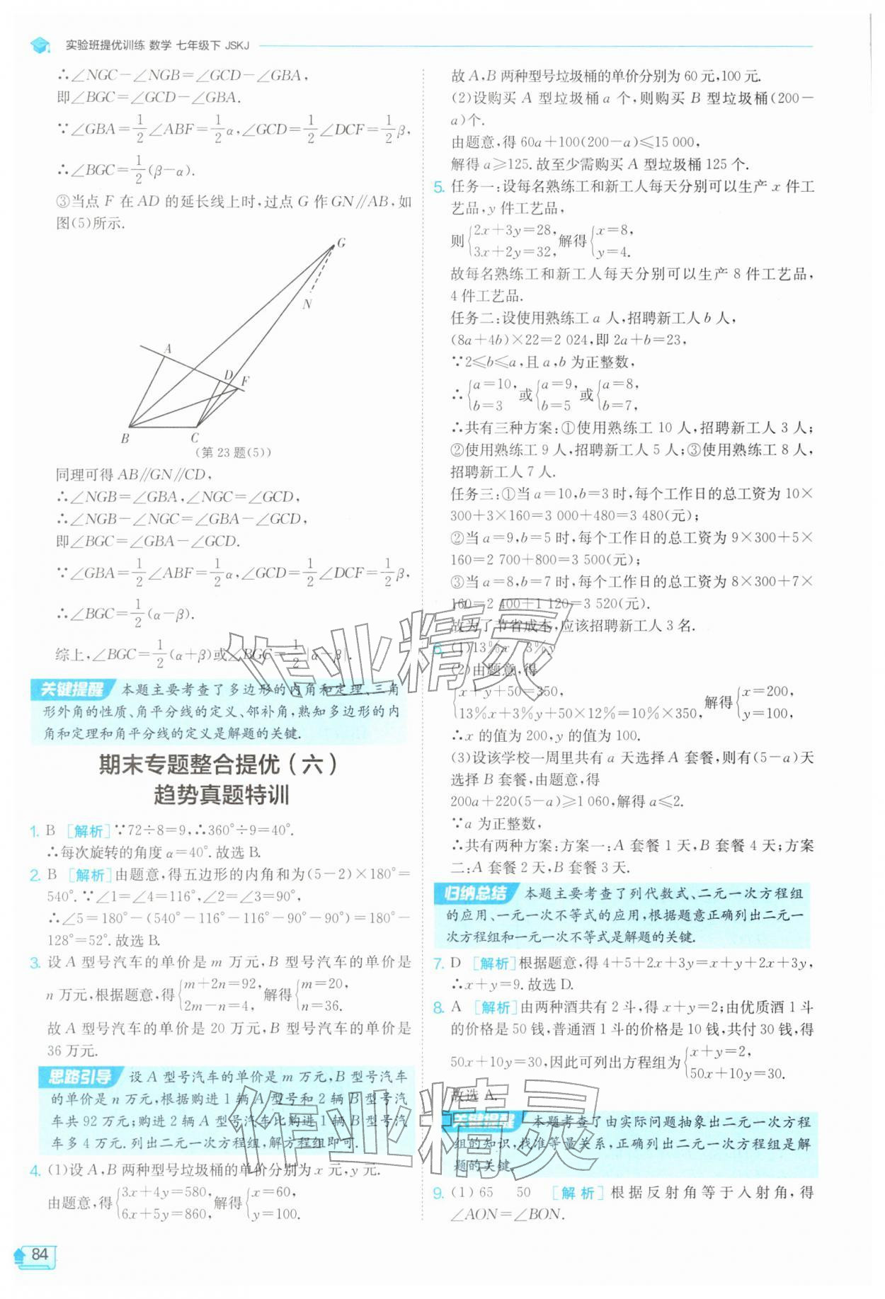 2026年实验班提优训练七年级数学下册苏科版参考答案第84页
