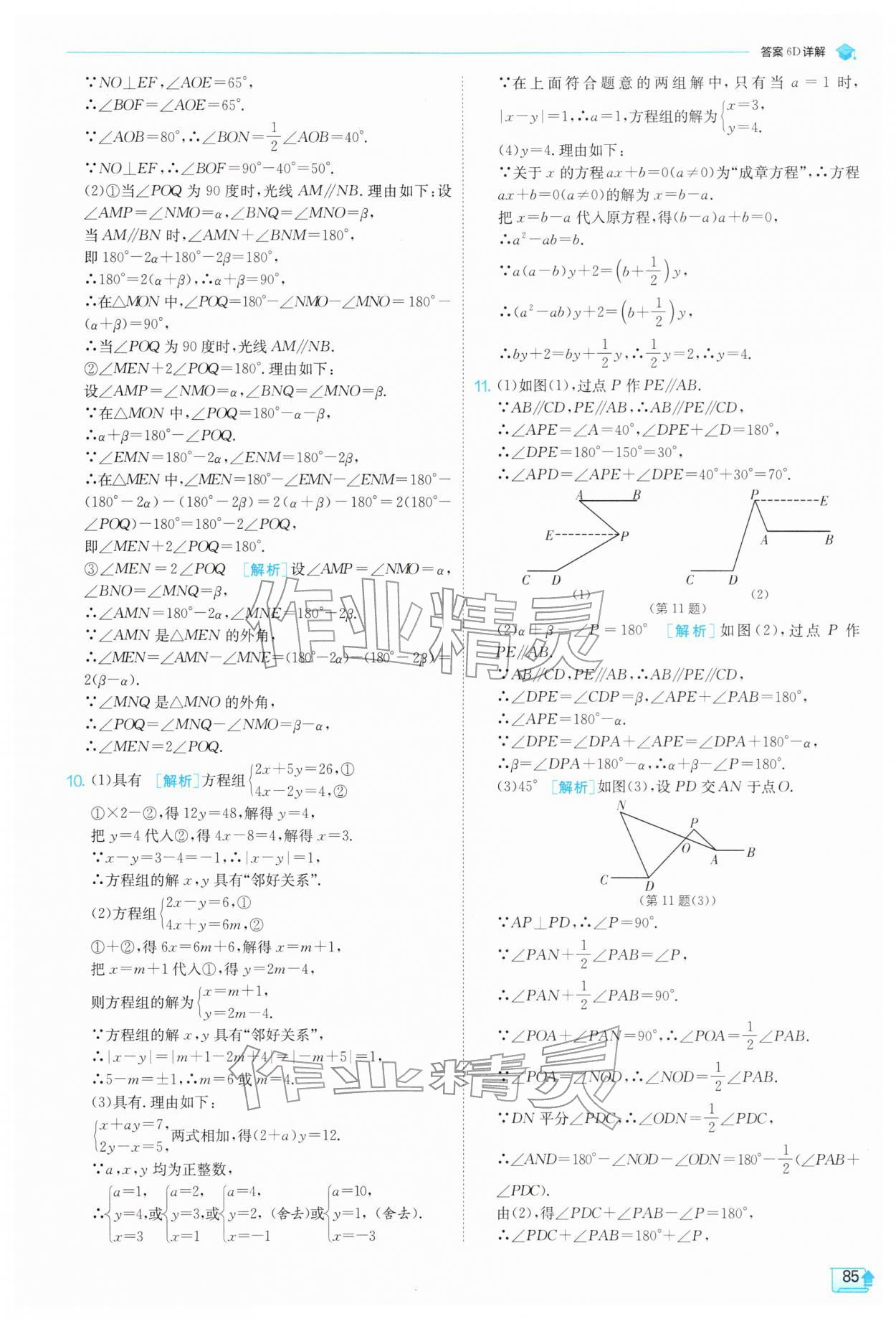 2026年实验班提优训练七年级数学下册苏科版参考答案第85页
