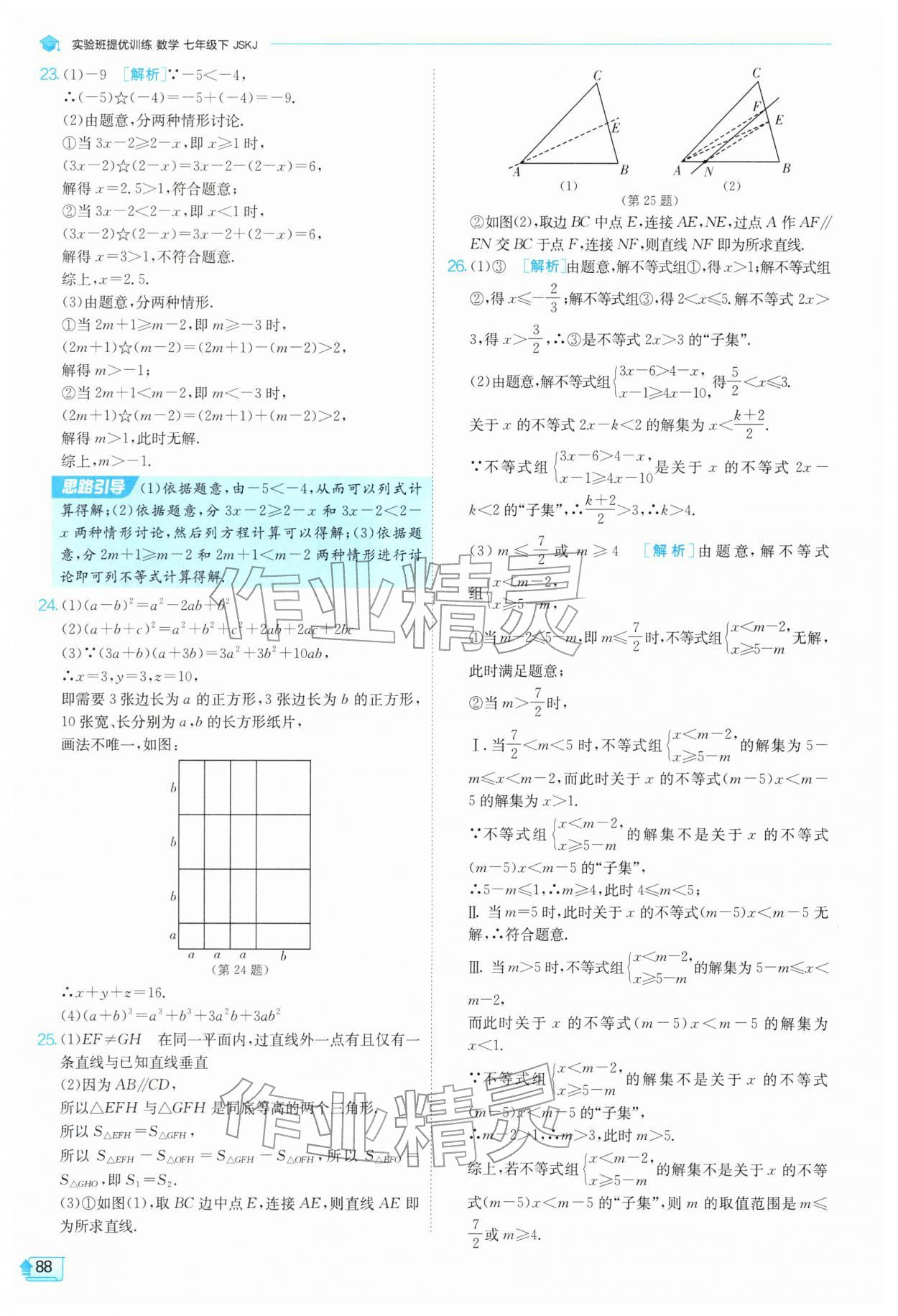 2026年实验班提优训练七年级数学下册苏科版参考答案第88页