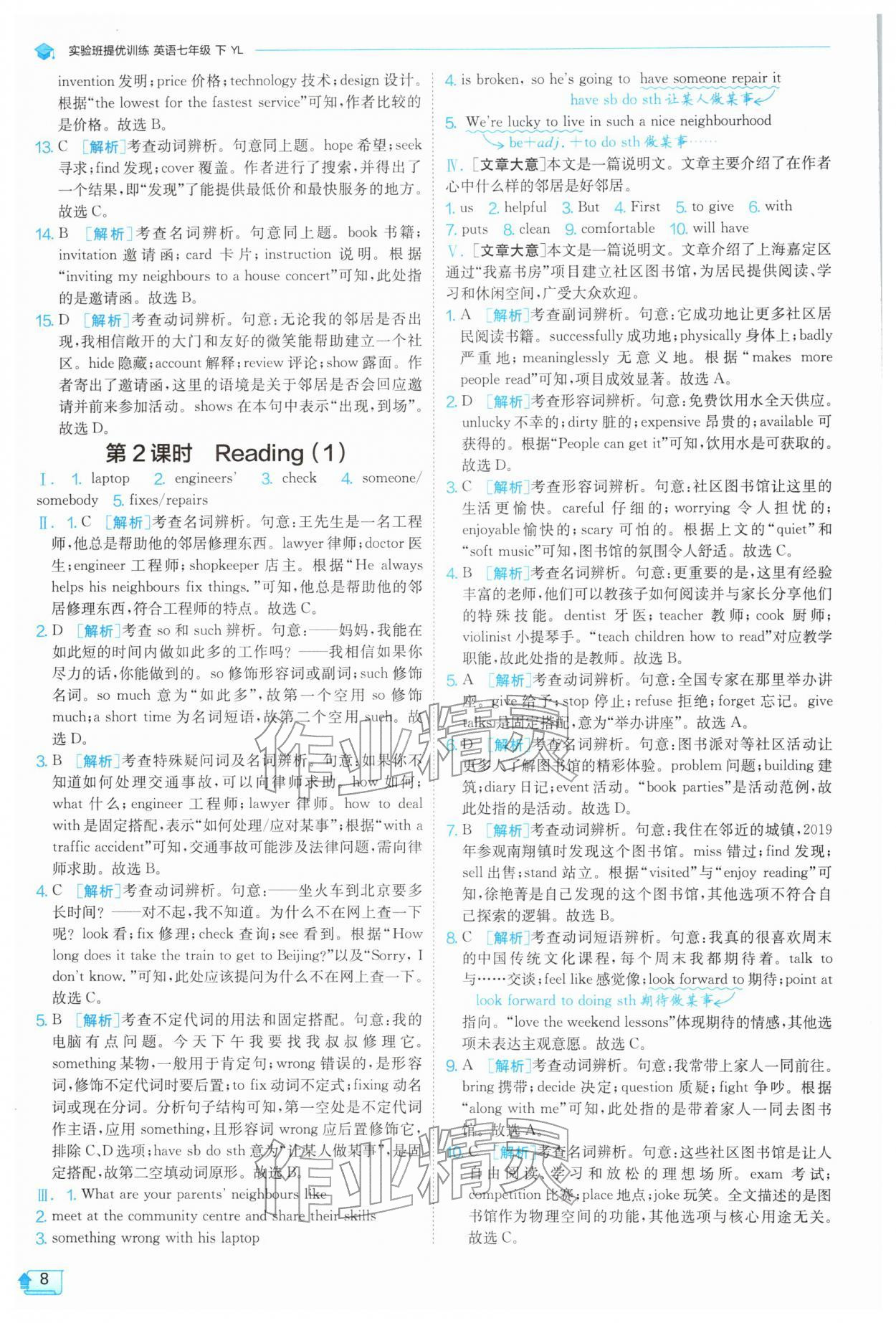 2026年实验班提优训练七年级英语下册译林版第8页