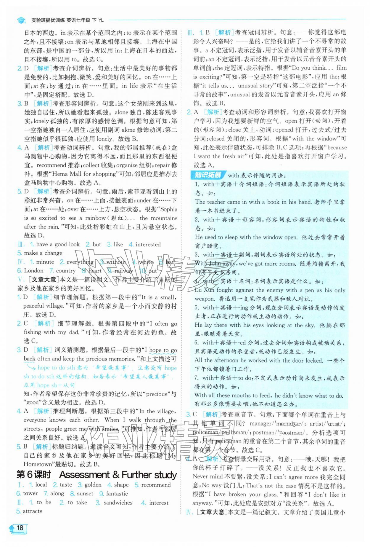 2026年实验班提优训练七年级英语下册译林版第18页