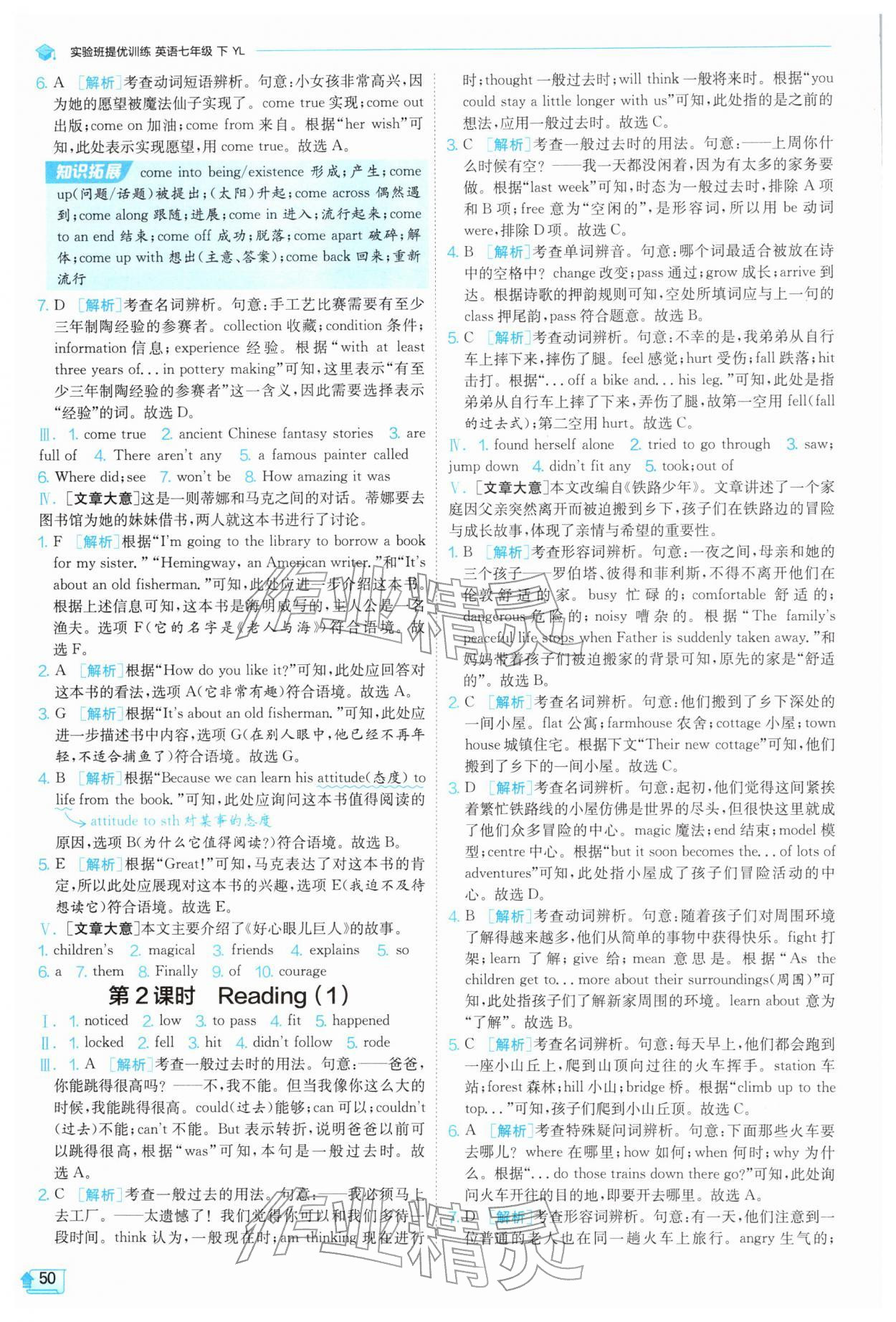 2026年实验班提优训练七年级英语下册译林版第50页