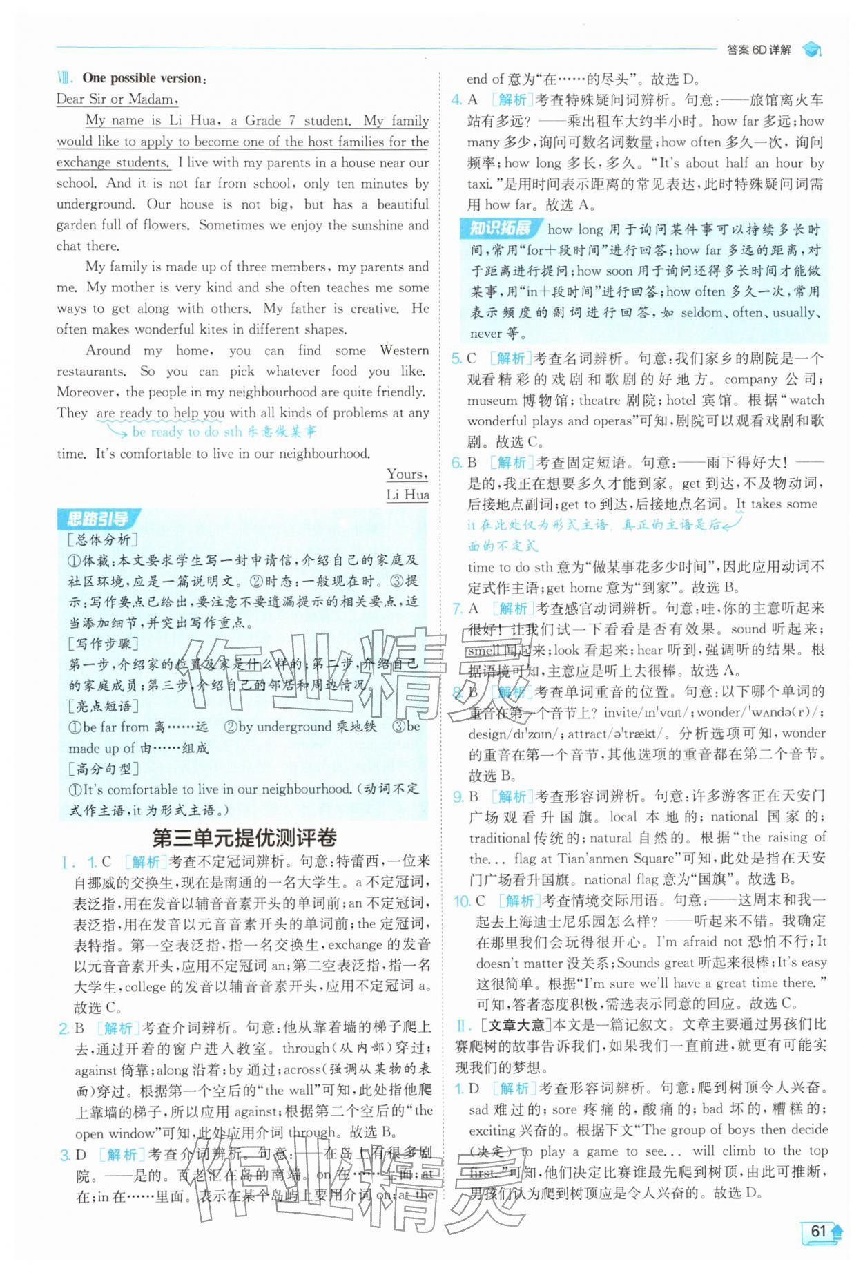 2026年实验班提优训练七年级英语下册译林版第61页