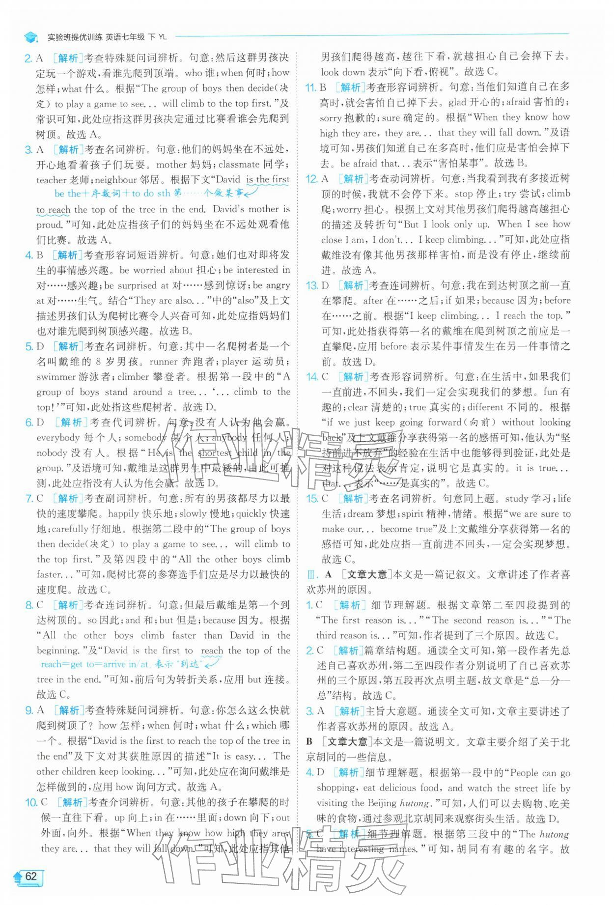 2026年实验班提优训练七年级英语下册译林版第62页