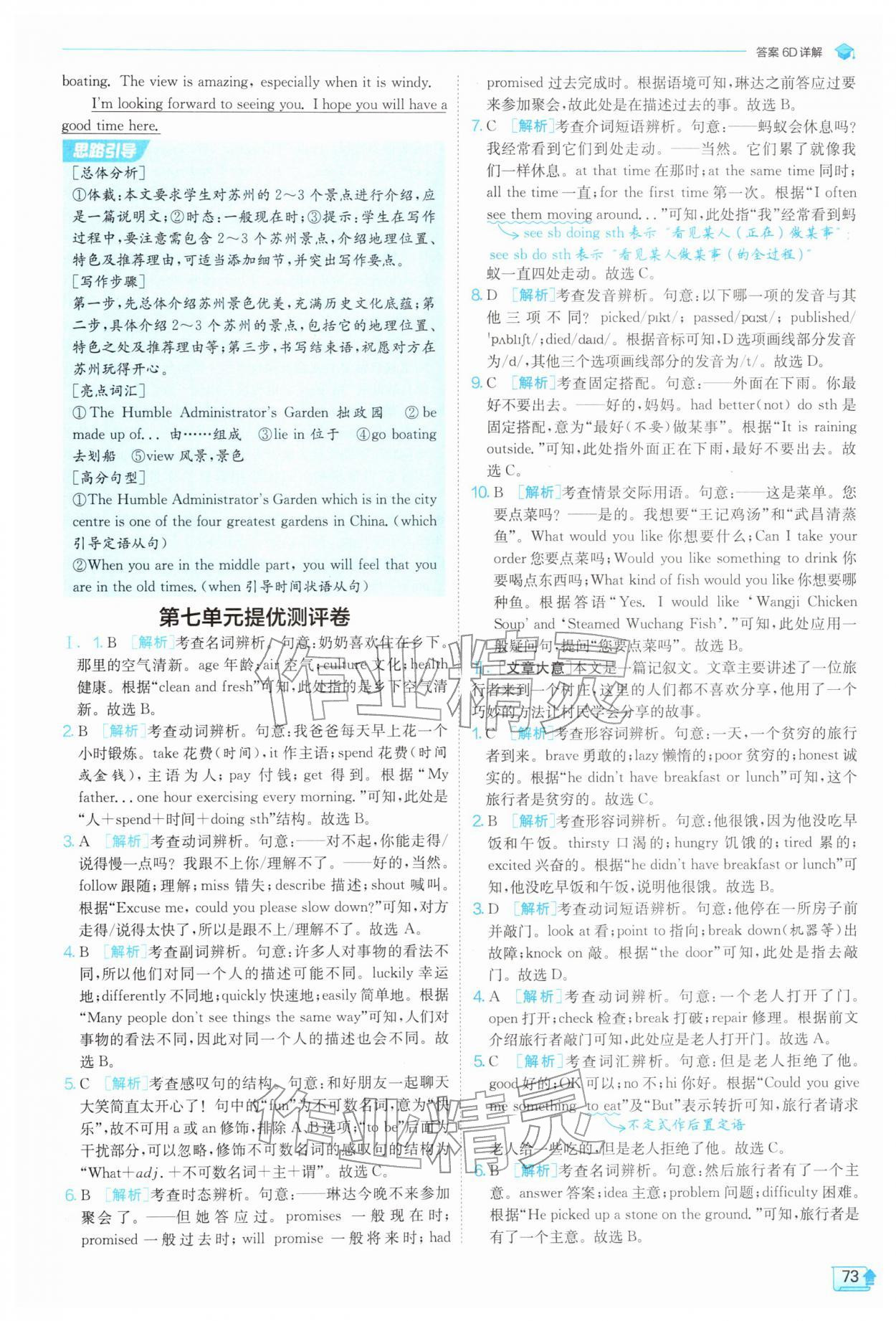 2026年实验班提优训练七年级英语下册译林版第73页