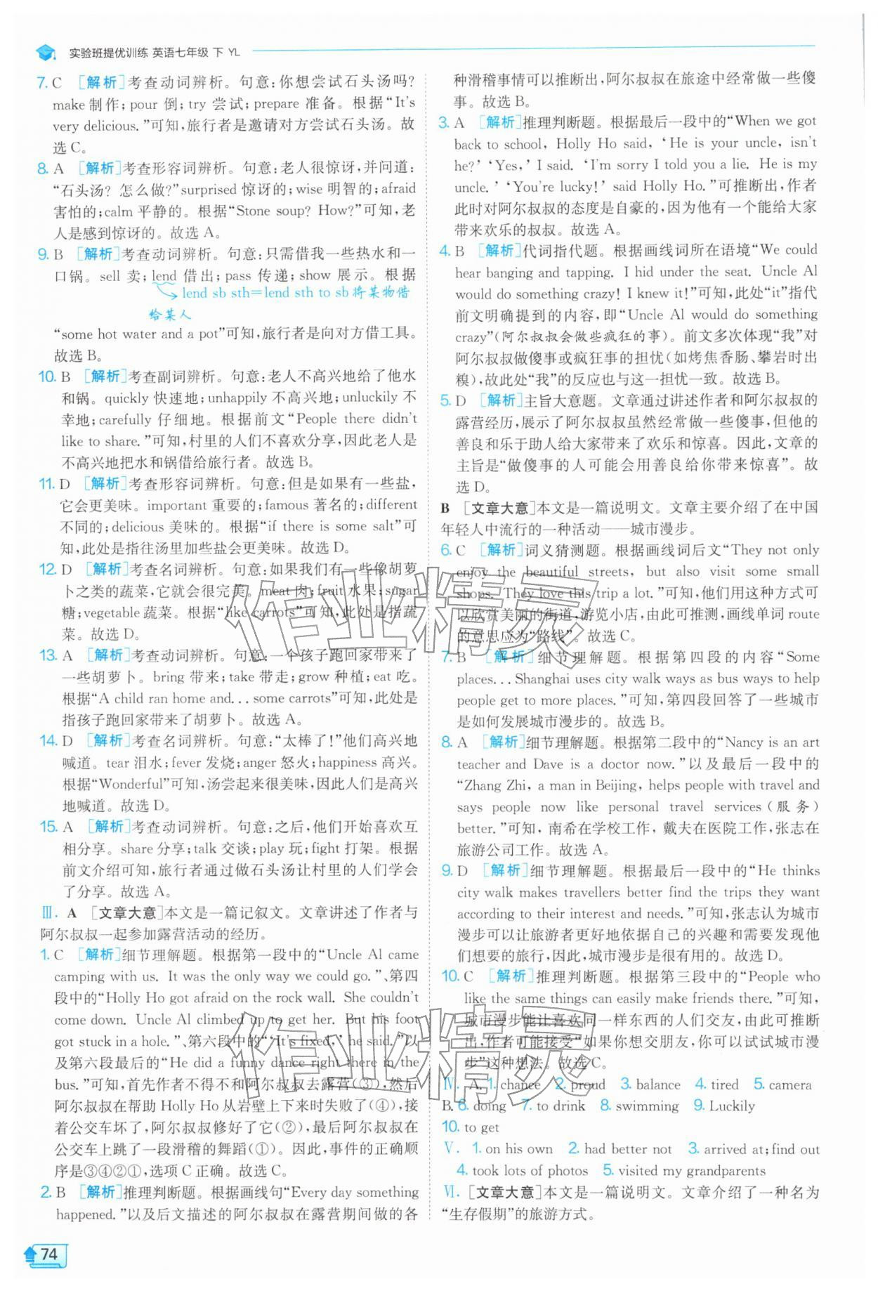2026年实验班提优训练七年级英语下册译林版第74页