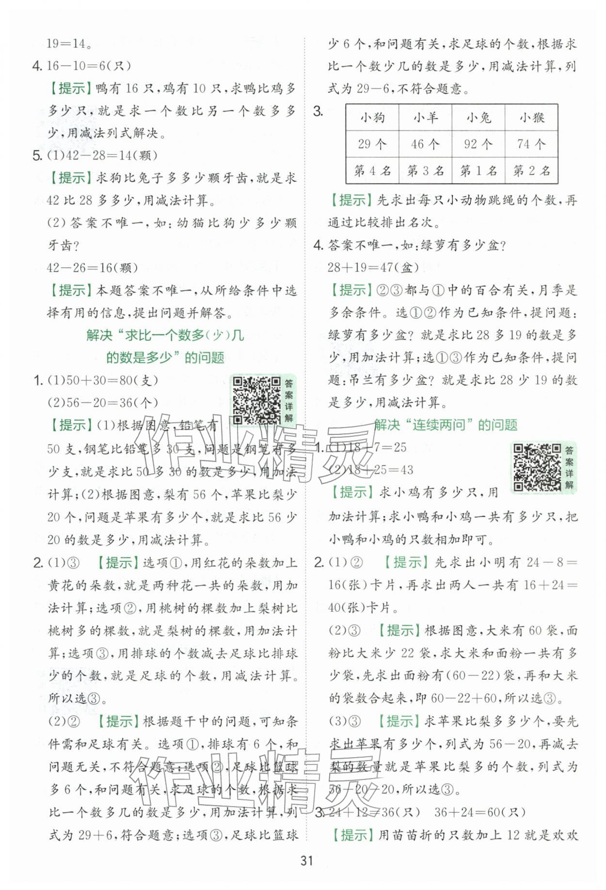 2026年实验班提优训练一年级数学下册人教版第31页