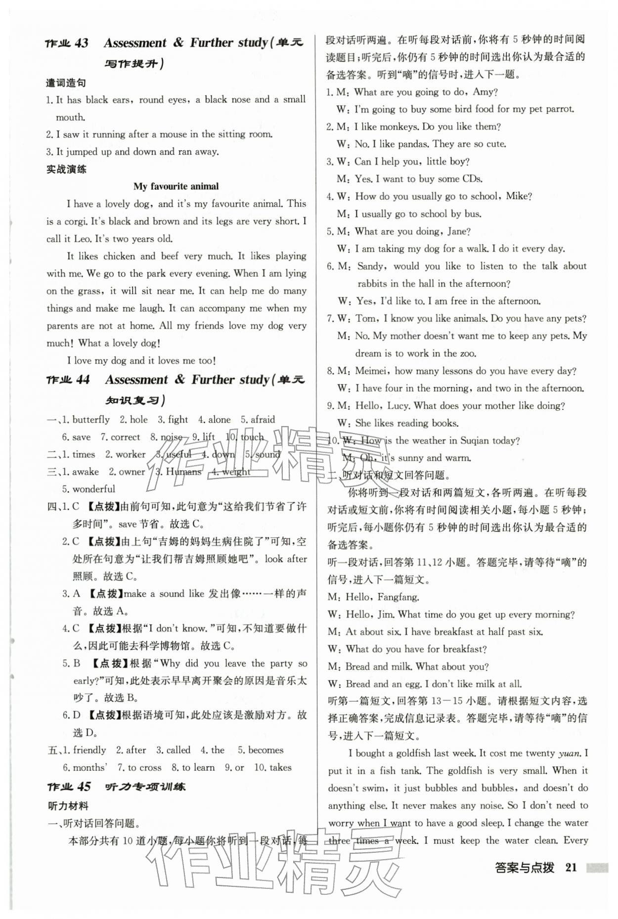 2026年启东中学作业本七年级英语下册译林版徐州专版第21页