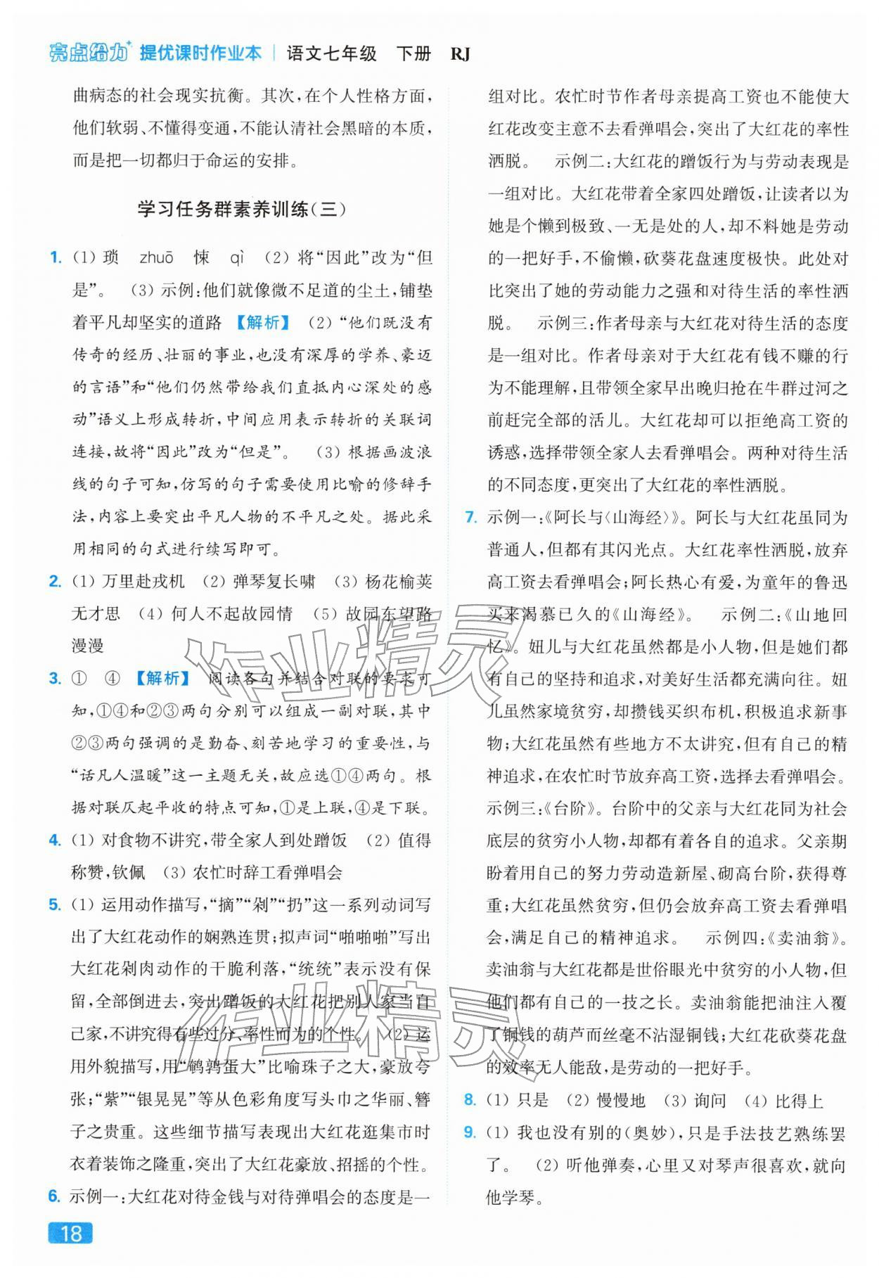 2026年亮点给力提优课时作业本七年级语文下册人教版第22页