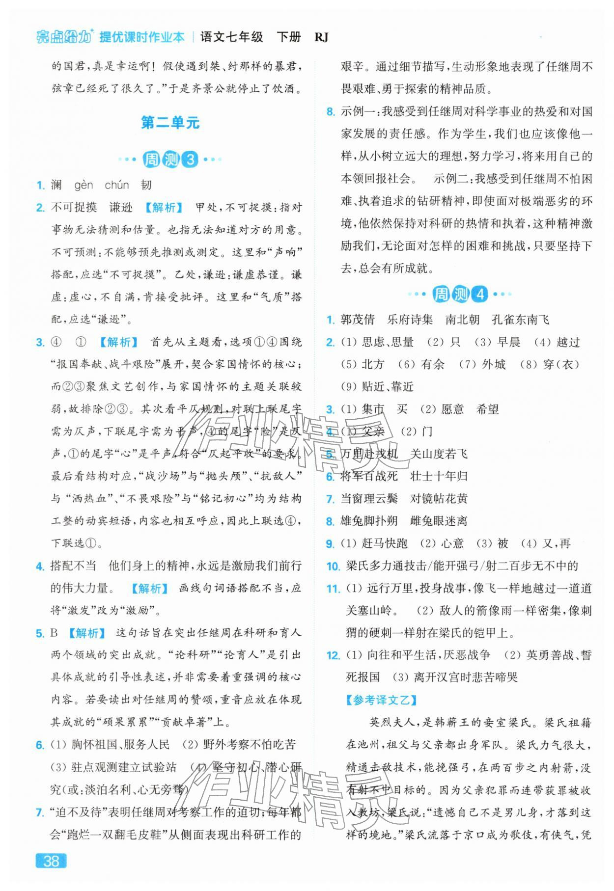 2026年亮点给力提优课时作业本七年级语文下册人教版第42页