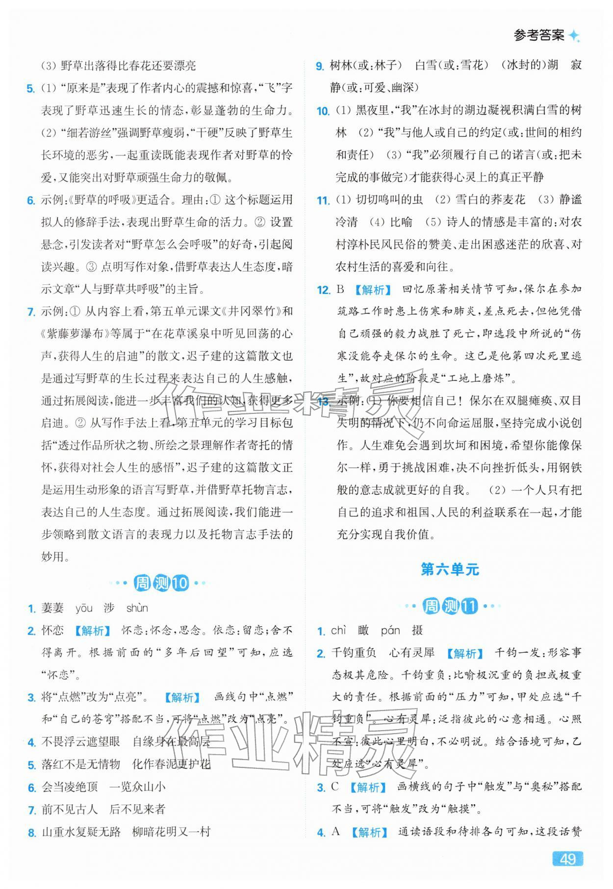 2026年亮点给力提优课时作业本七年级语文下册人教版第53页