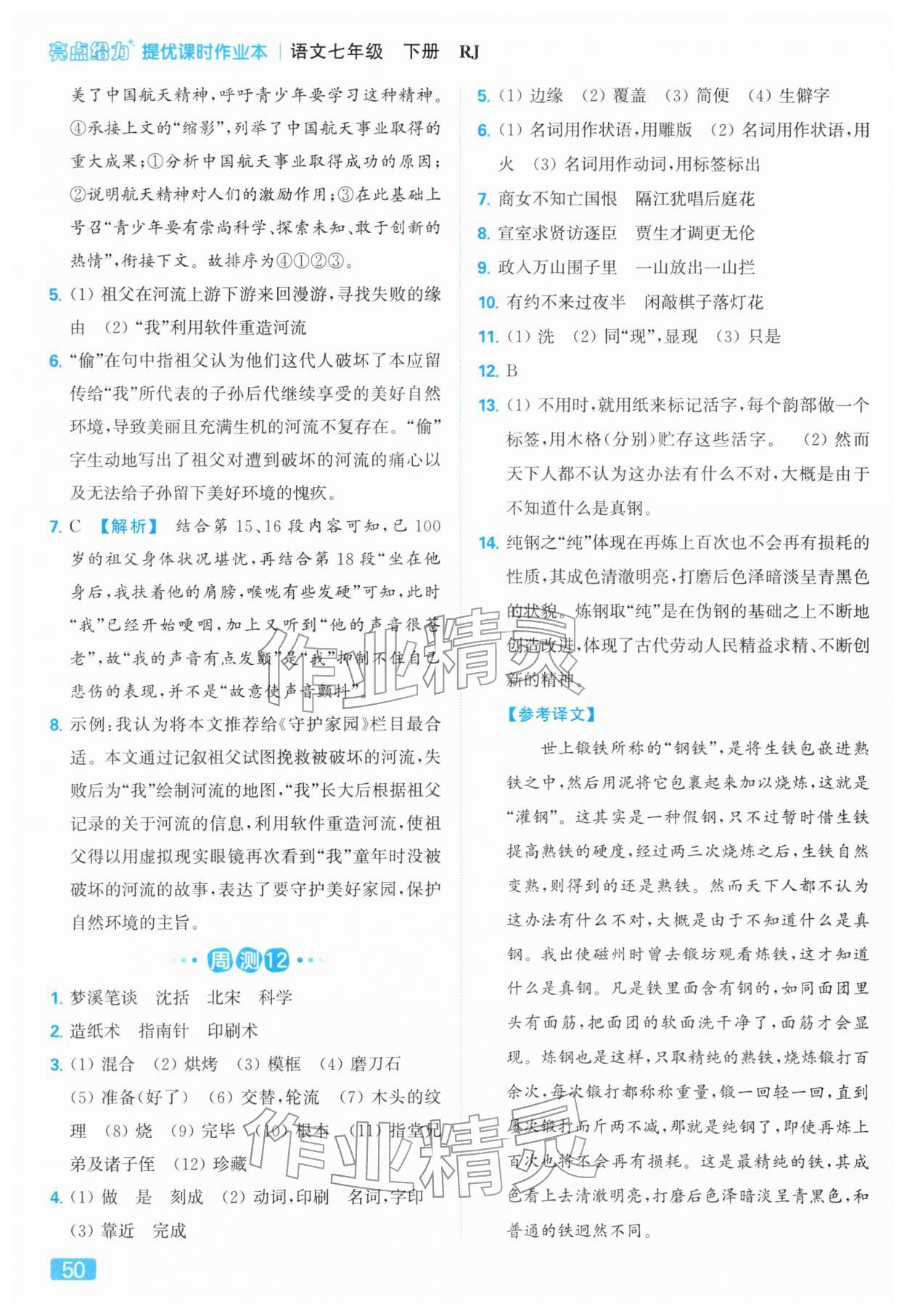 2026年亮点给力提优课时作业本七年级语文下册人教版第54页