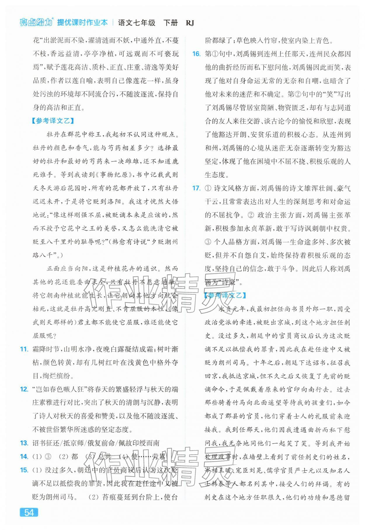 2026年亮点给力提优课时作业本七年级语文下册人教版第58页