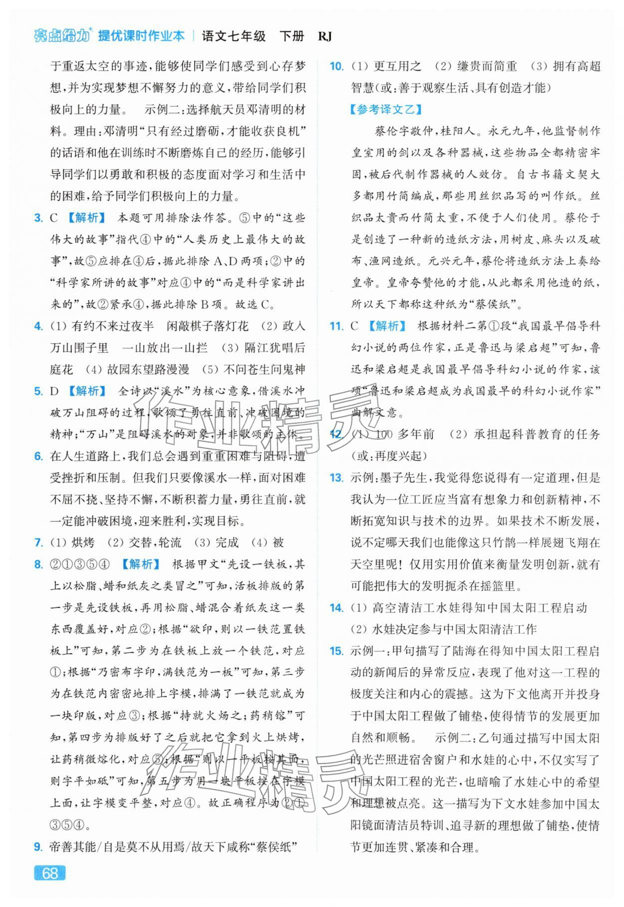2026年亮点给力提优课时作业本七年级语文下册人教版第72页