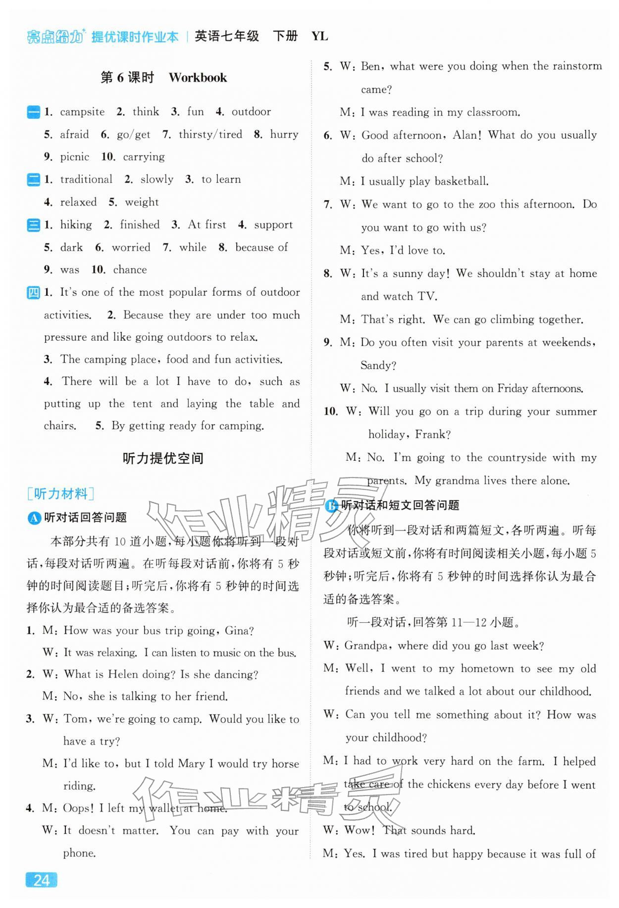亮点给力提优课时作业本答案