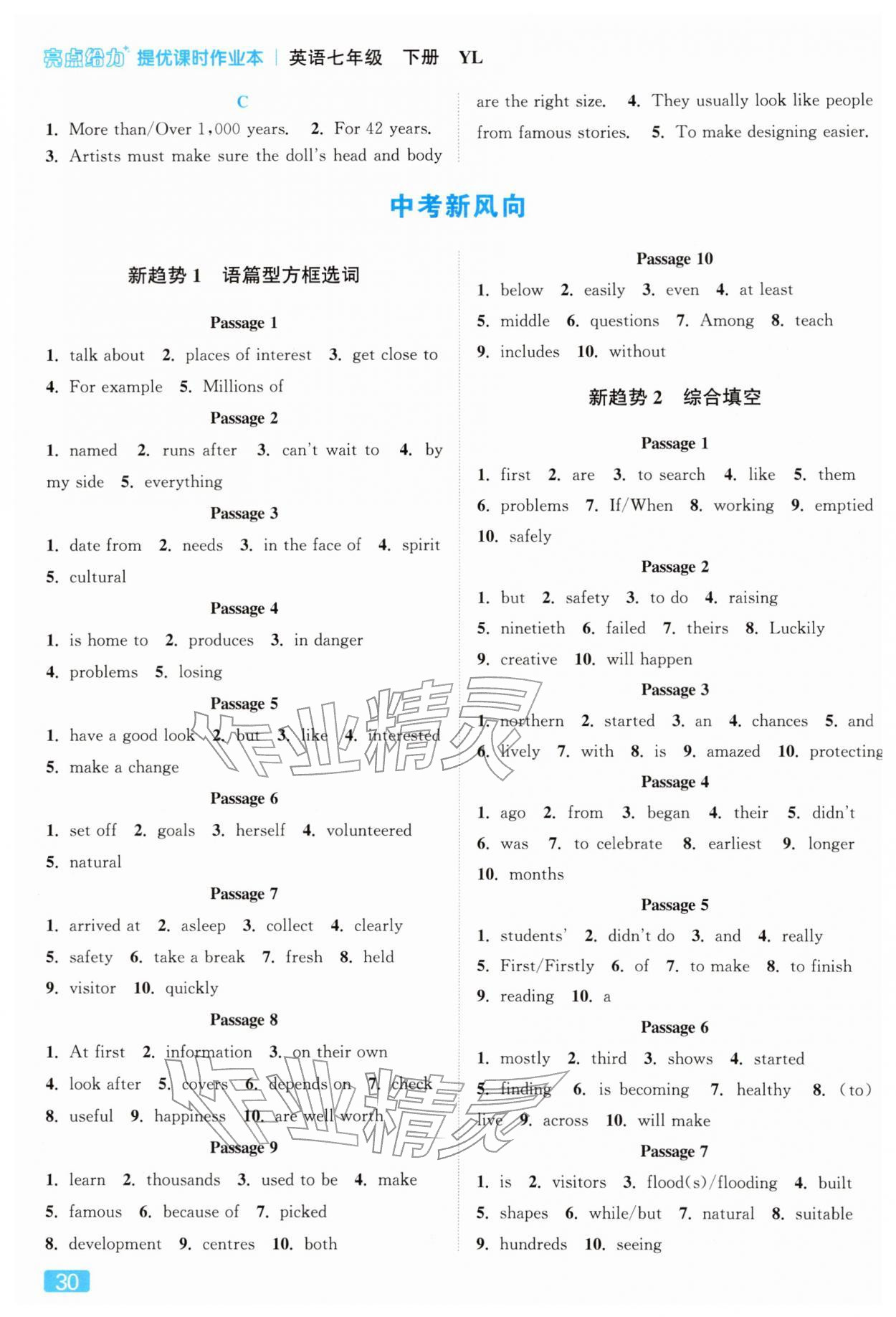 2026年亮点给力提优课时作业本七年级英语下册译林版第34页