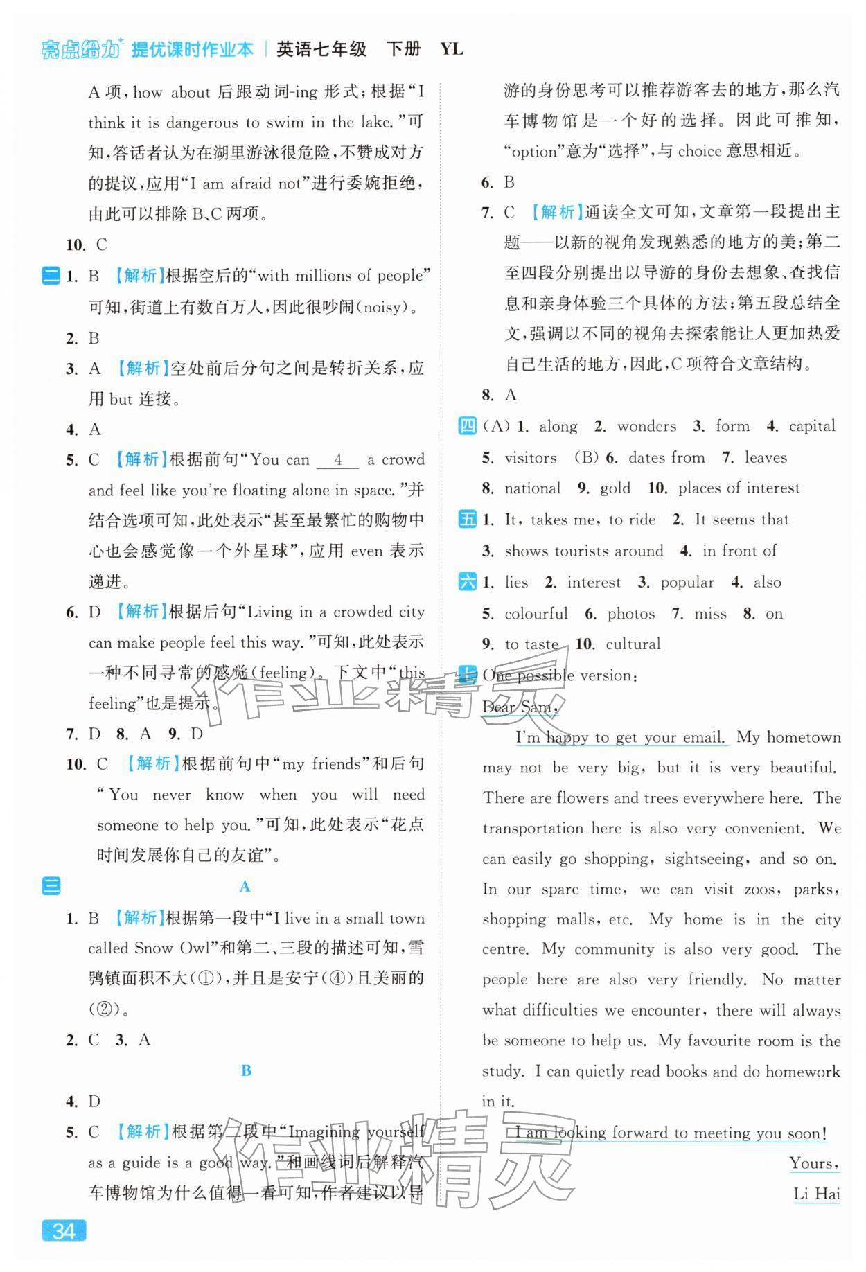 2026年亮点给力提优课时作业本七年级英语下册译林版第38页