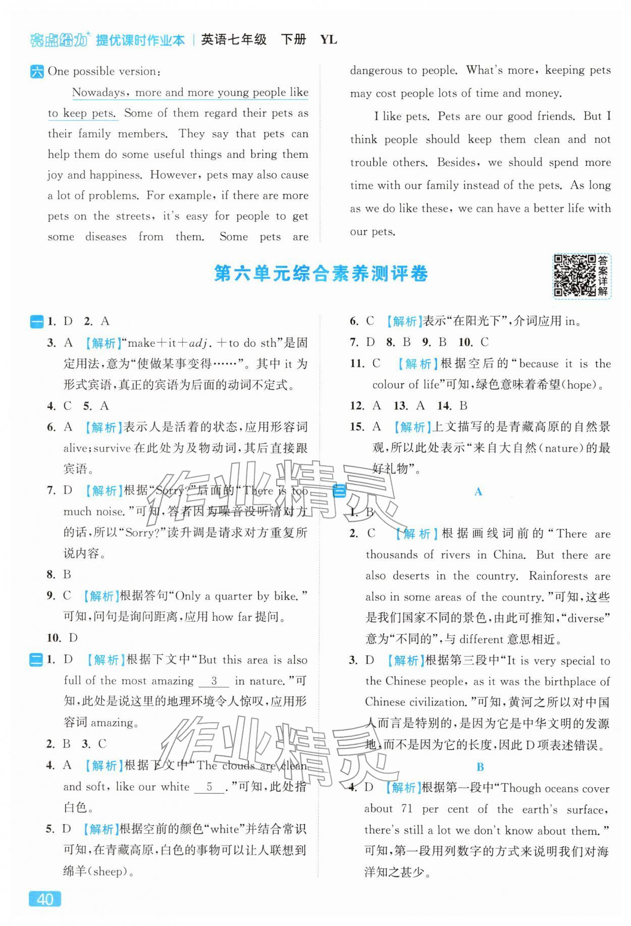 2026年亮点给力提优课时作业本七年级英语下册译林版第44页