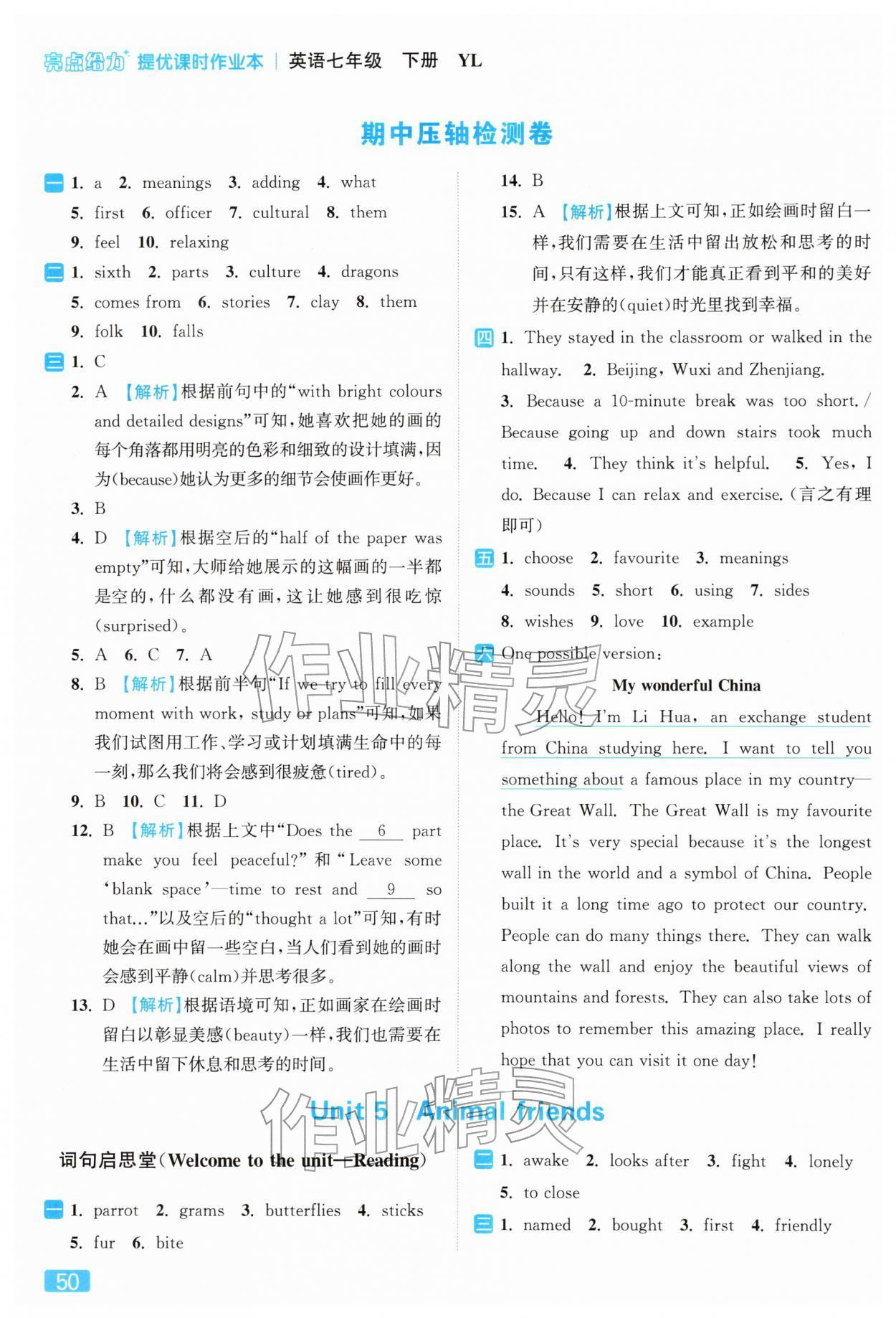 亮点给力提优课时作业本答案