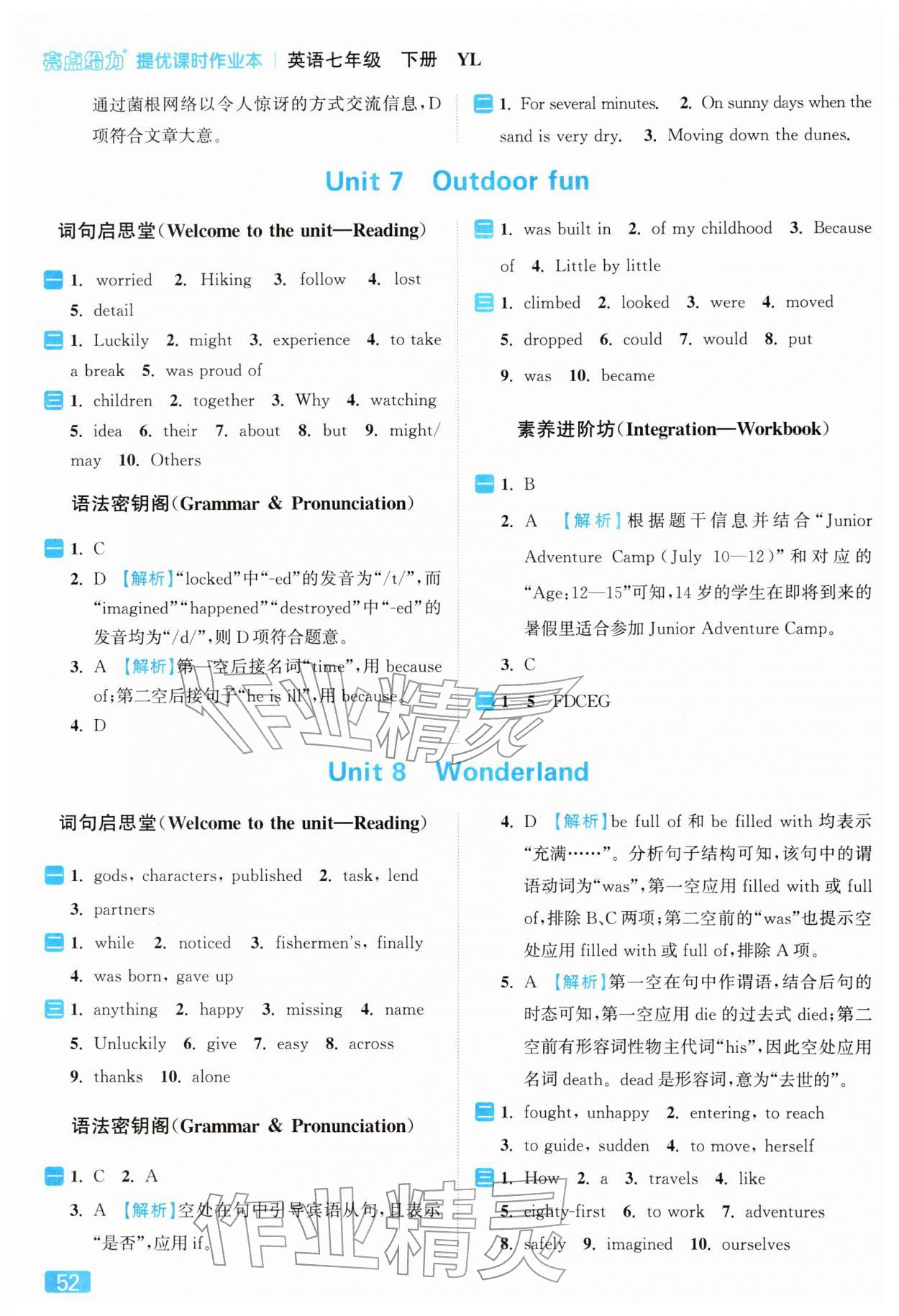 亮点给力提优课时作业本答案