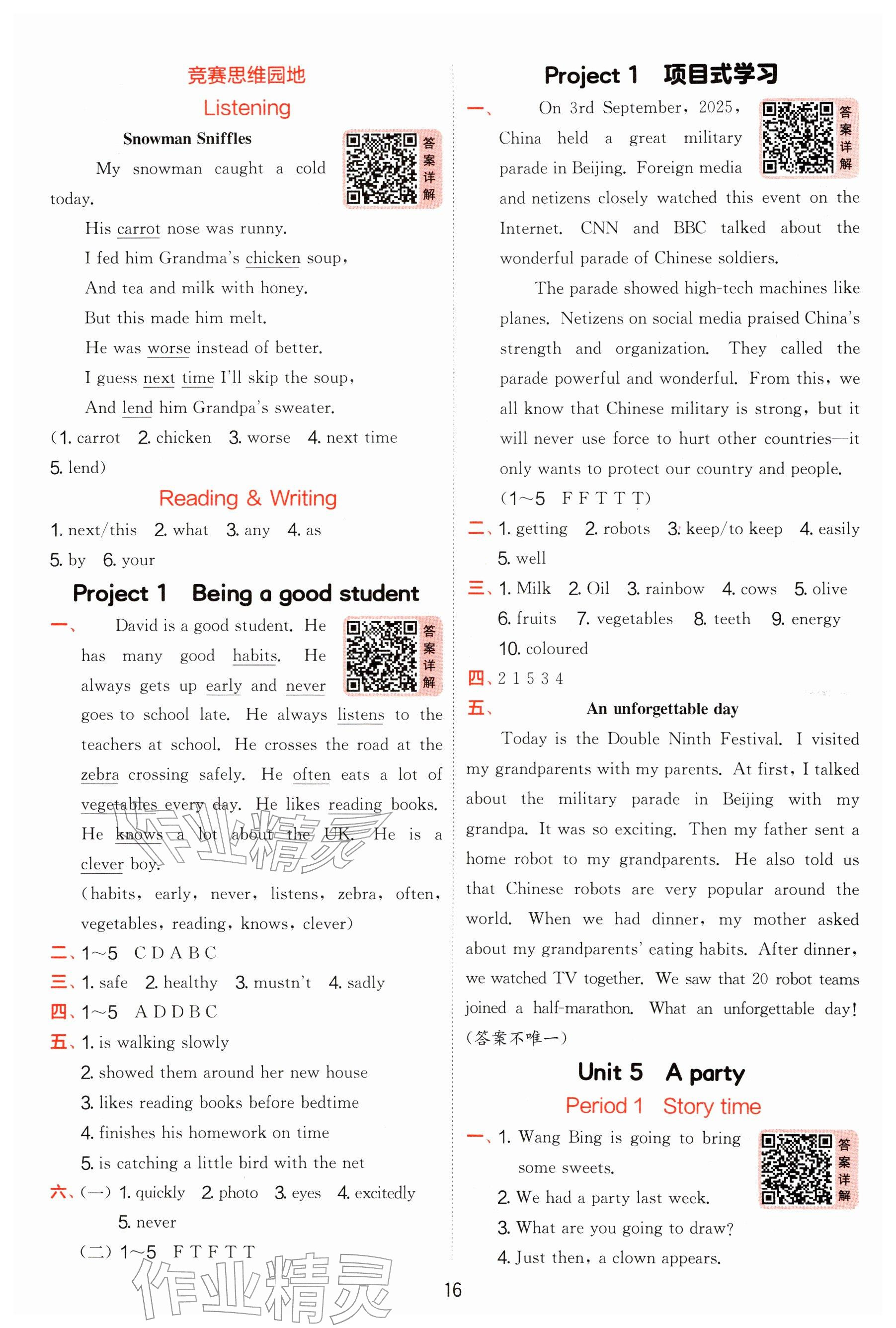 2026年实验班提优训练六年级英语下册译林版参考答案第16页