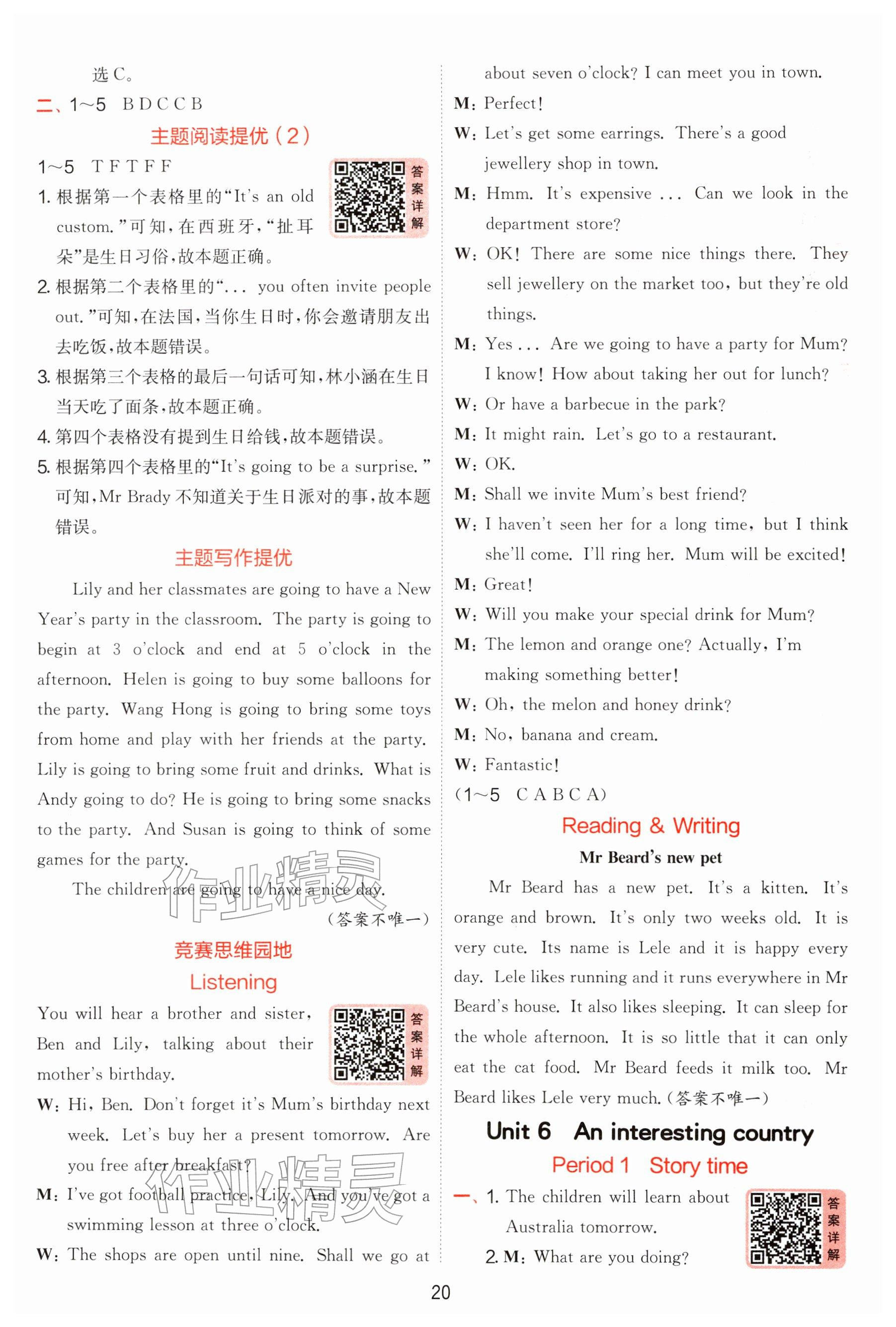2026年实验班提优训练六年级英语下册译林版参考答案第20页