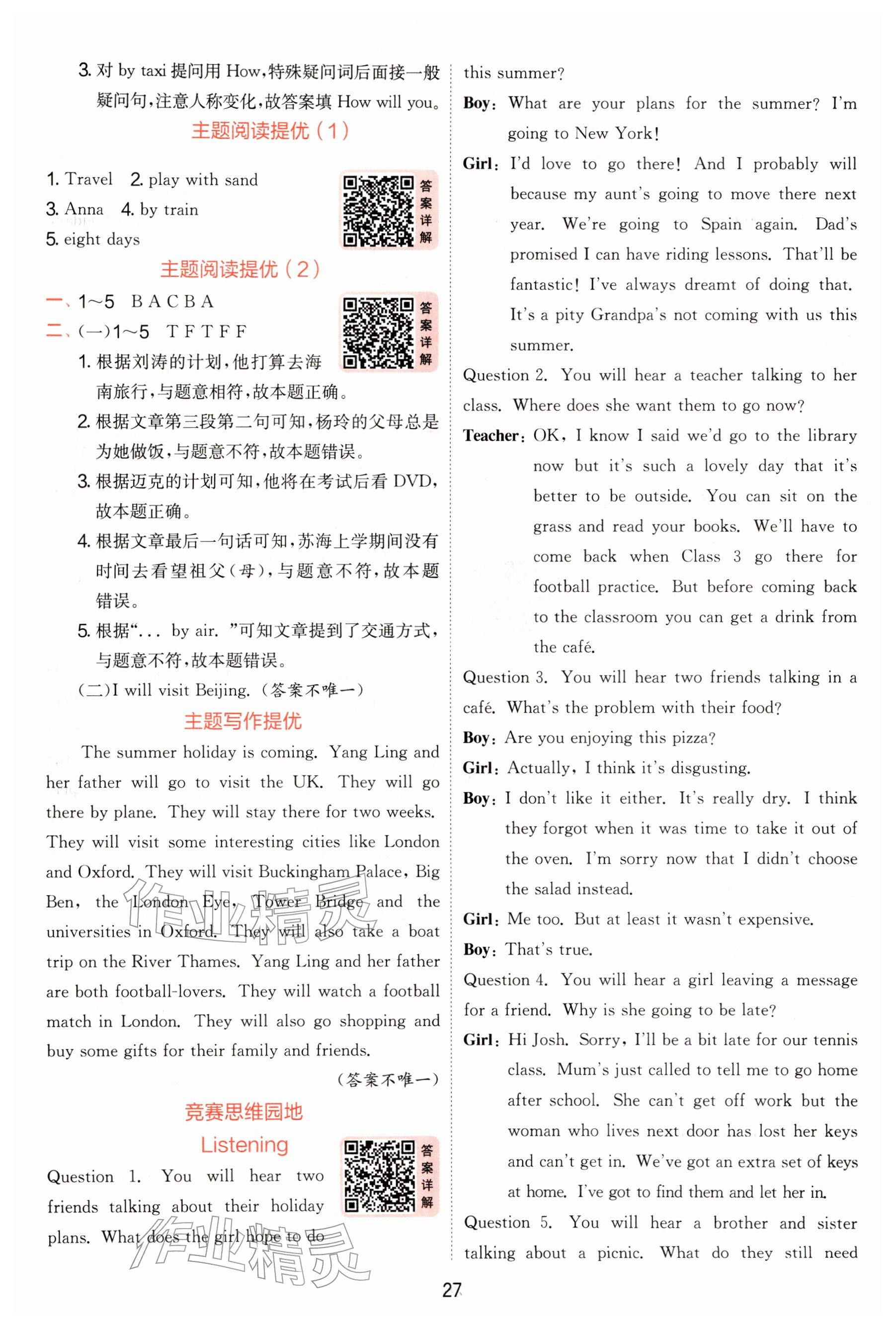2026年实验班提优训练六年级英语下册译林版参考答案第27页