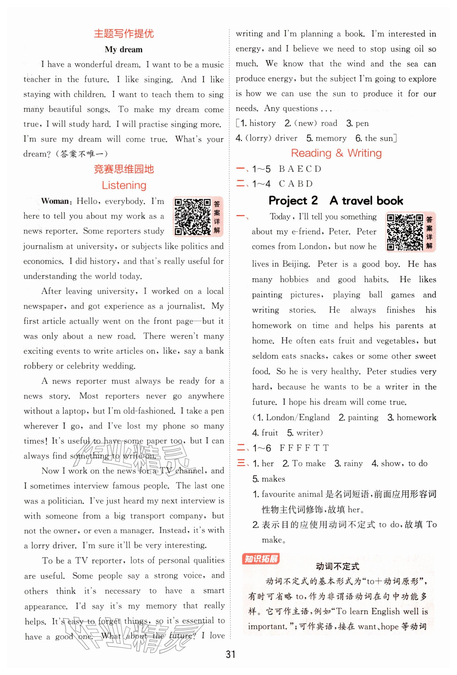 2026年实验班提优训练六年级英语下册译林版参考答案第31页
