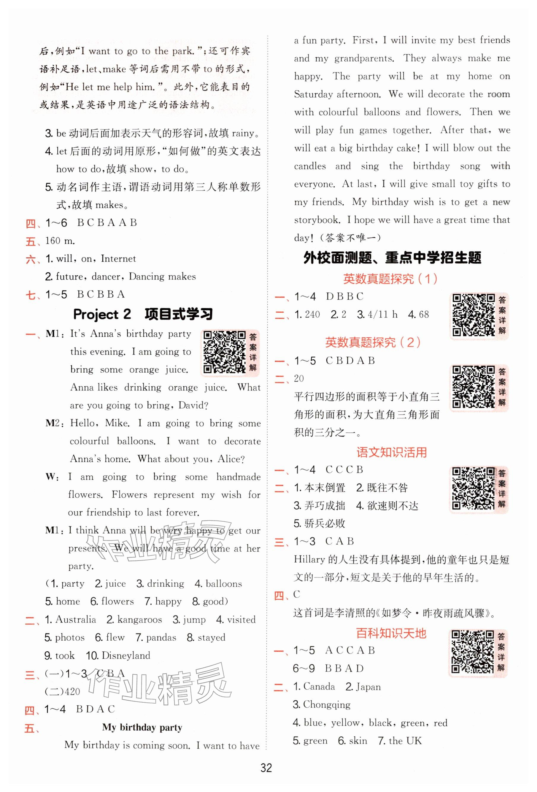 2026年实验班提优训练六年级英语下册译林版参考答案第32页