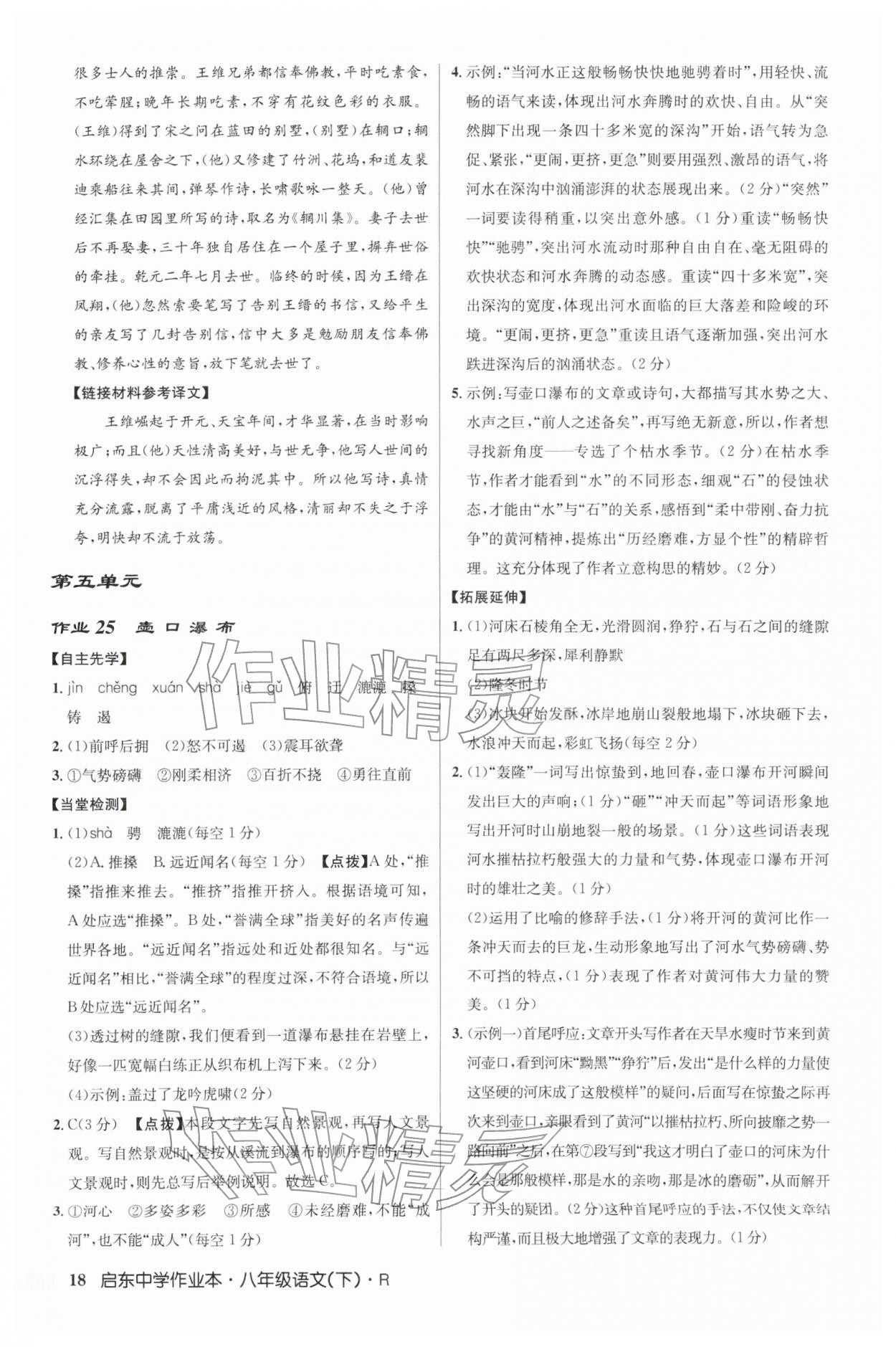 2026年启东中学作业本八年级语文下册人教版第18页