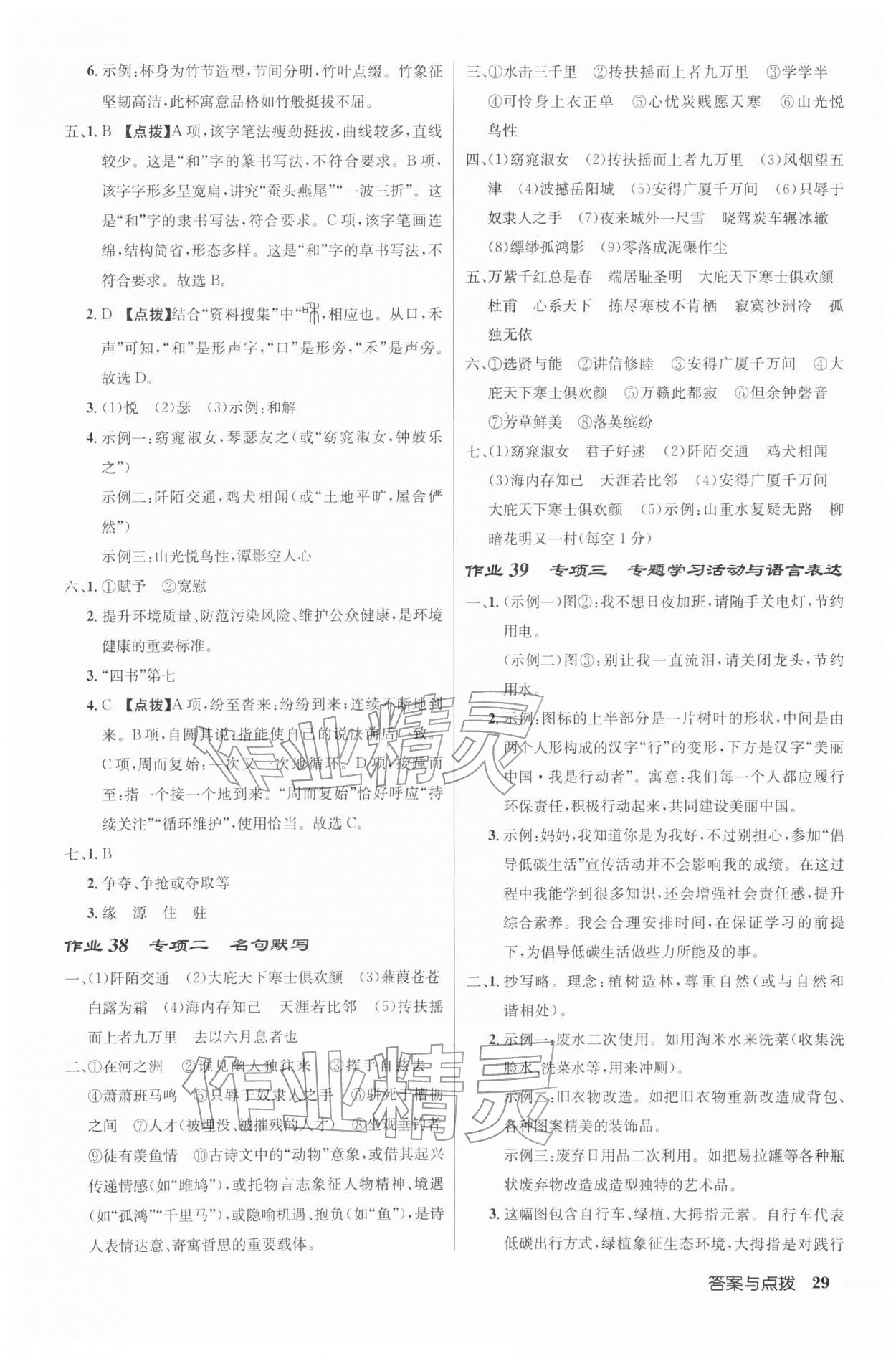 2026年启东中学作业本八年级语文下册人教版第29页