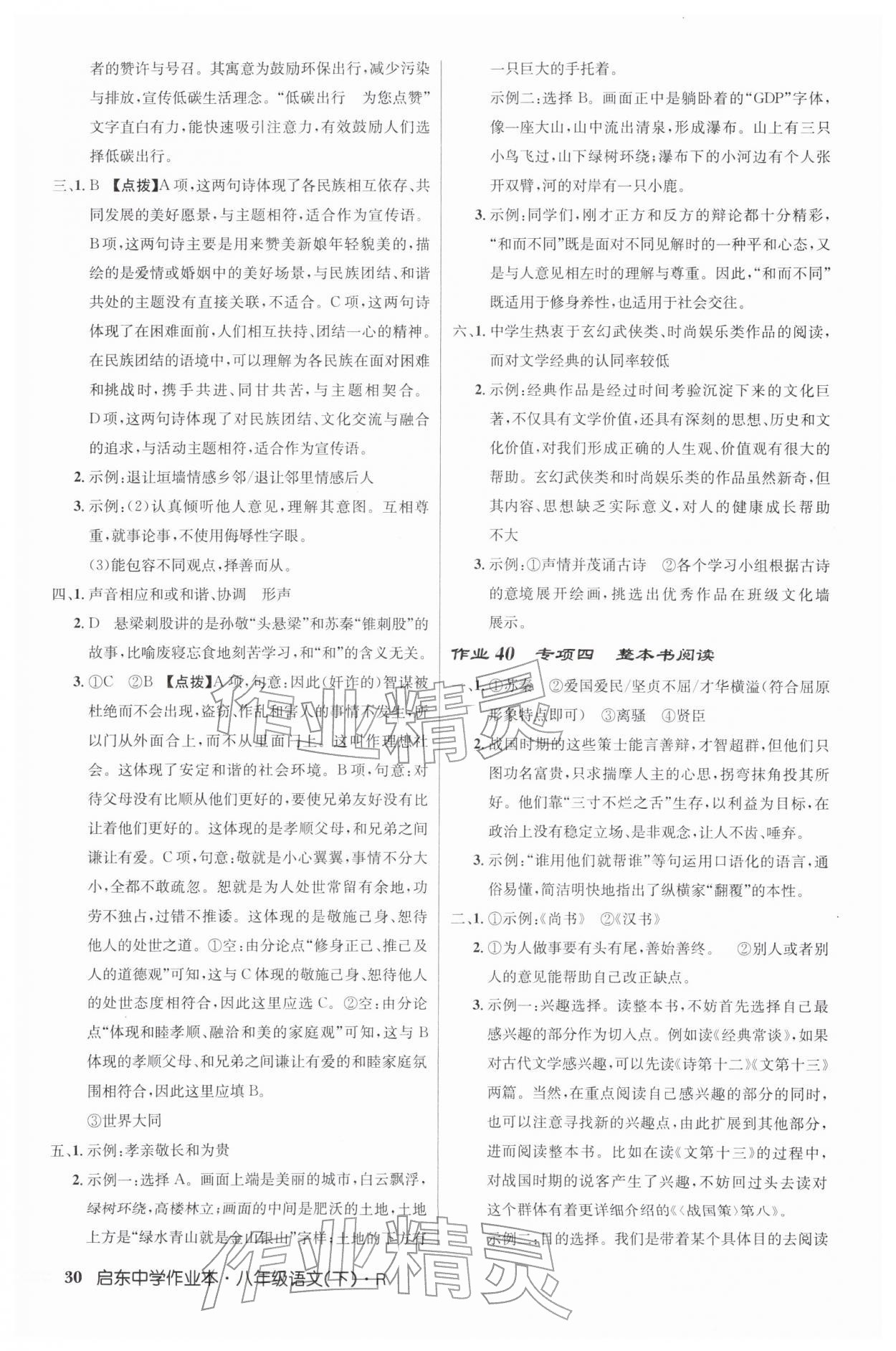 2026年启东中学作业本八年级语文下册人教版第30页