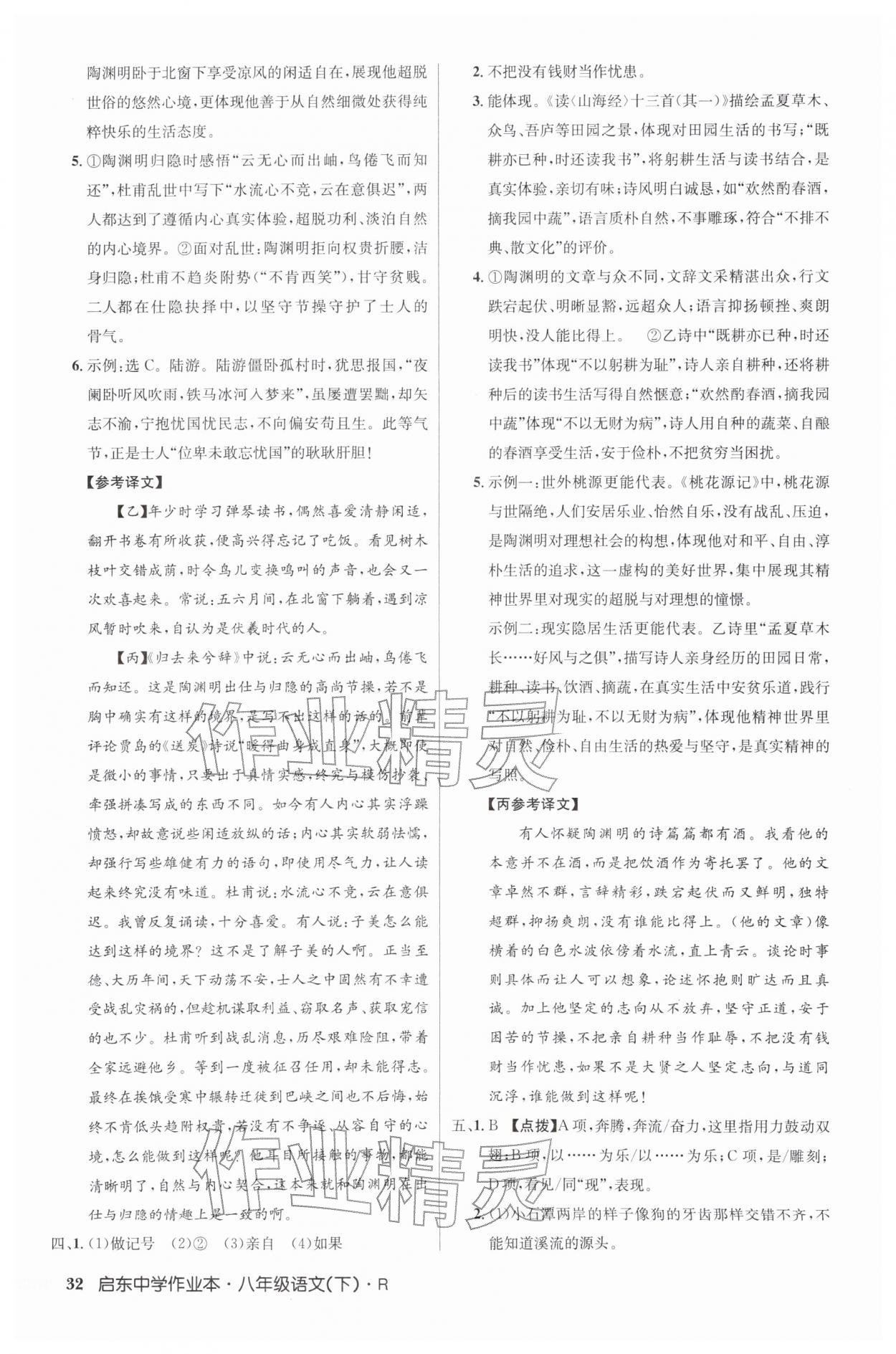 2026年启东中学作业本八年级语文下册人教版第32页