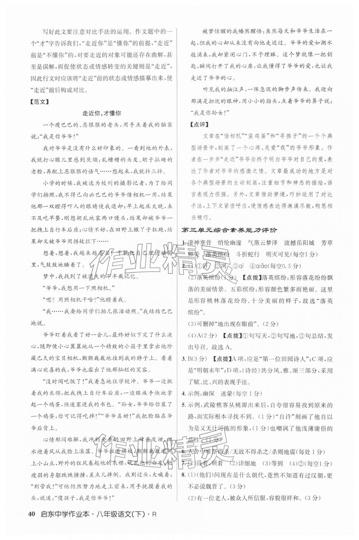 2026年启东中学作业本八年级语文下册人教版第40页