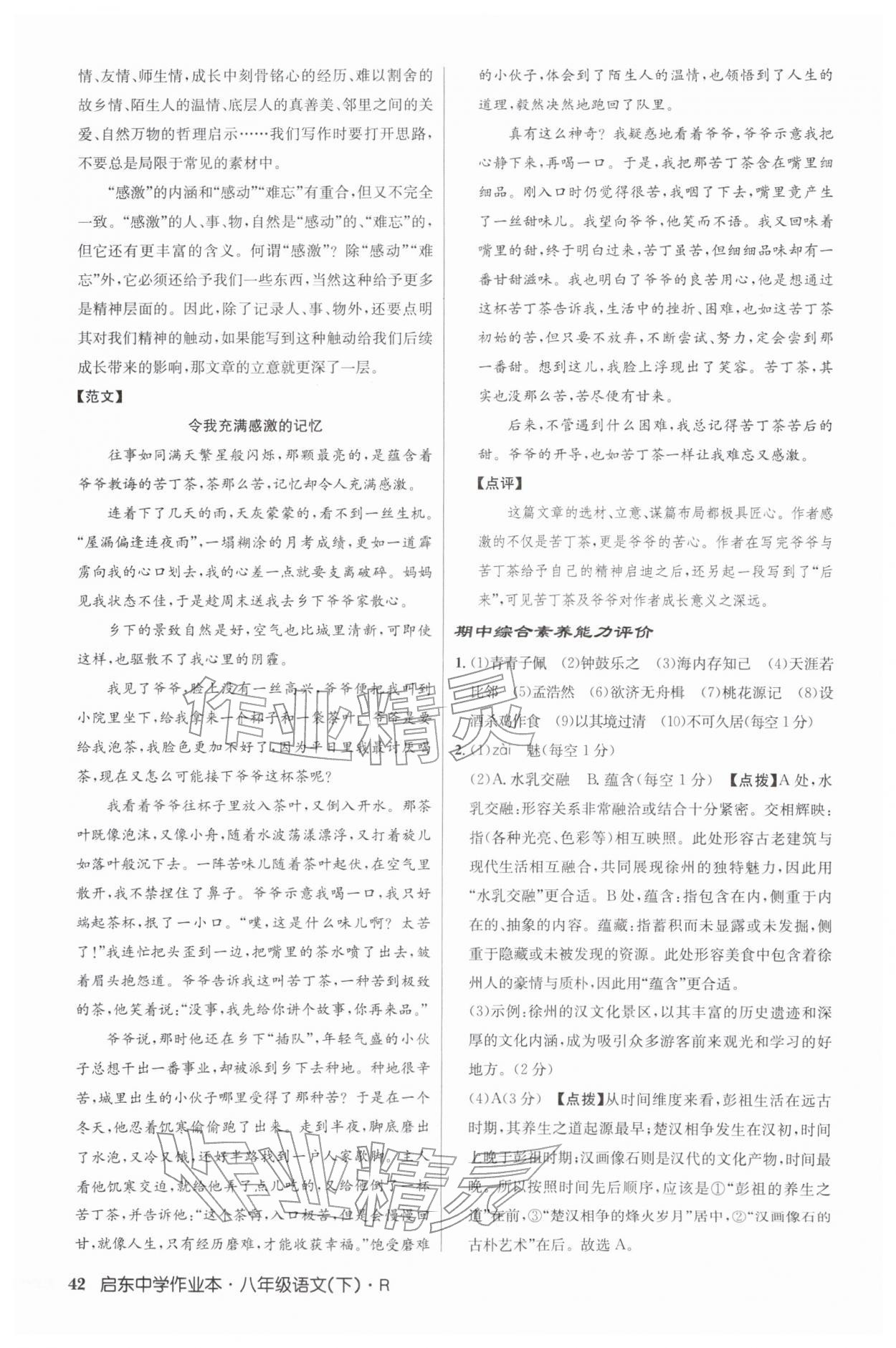 2026年启东中学作业本八年级语文下册人教版第42页