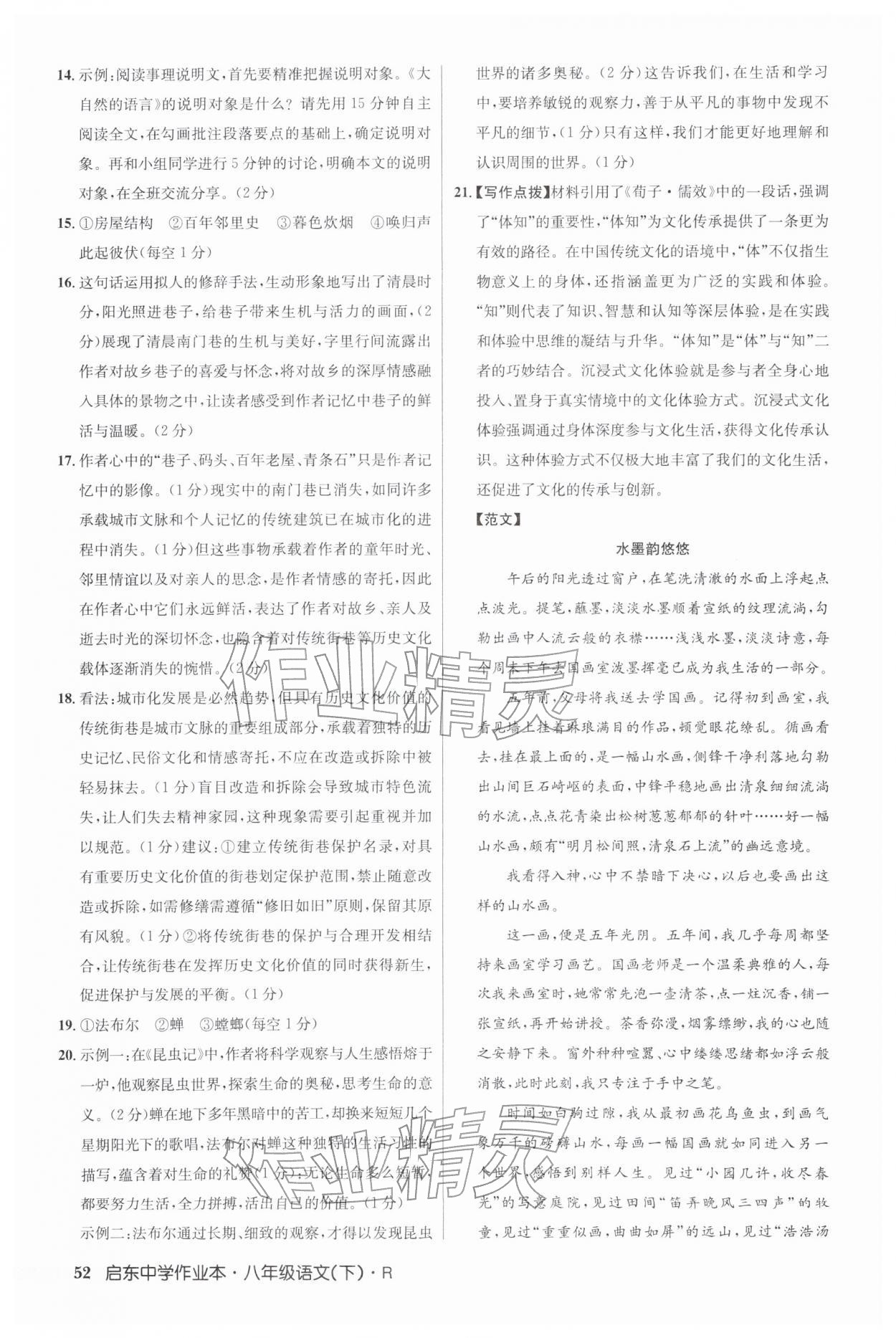 2026年启东中学作业本八年级语文下册人教版第52页