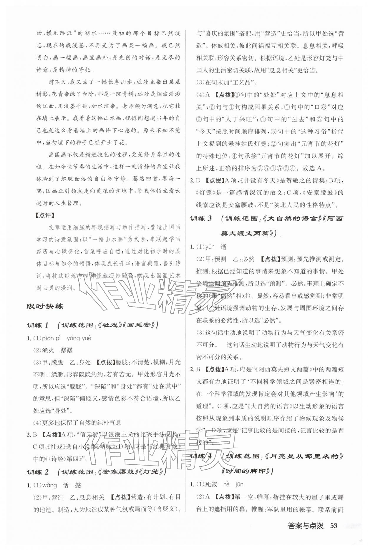 2026年启东中学作业本八年级语文下册人教版第53页