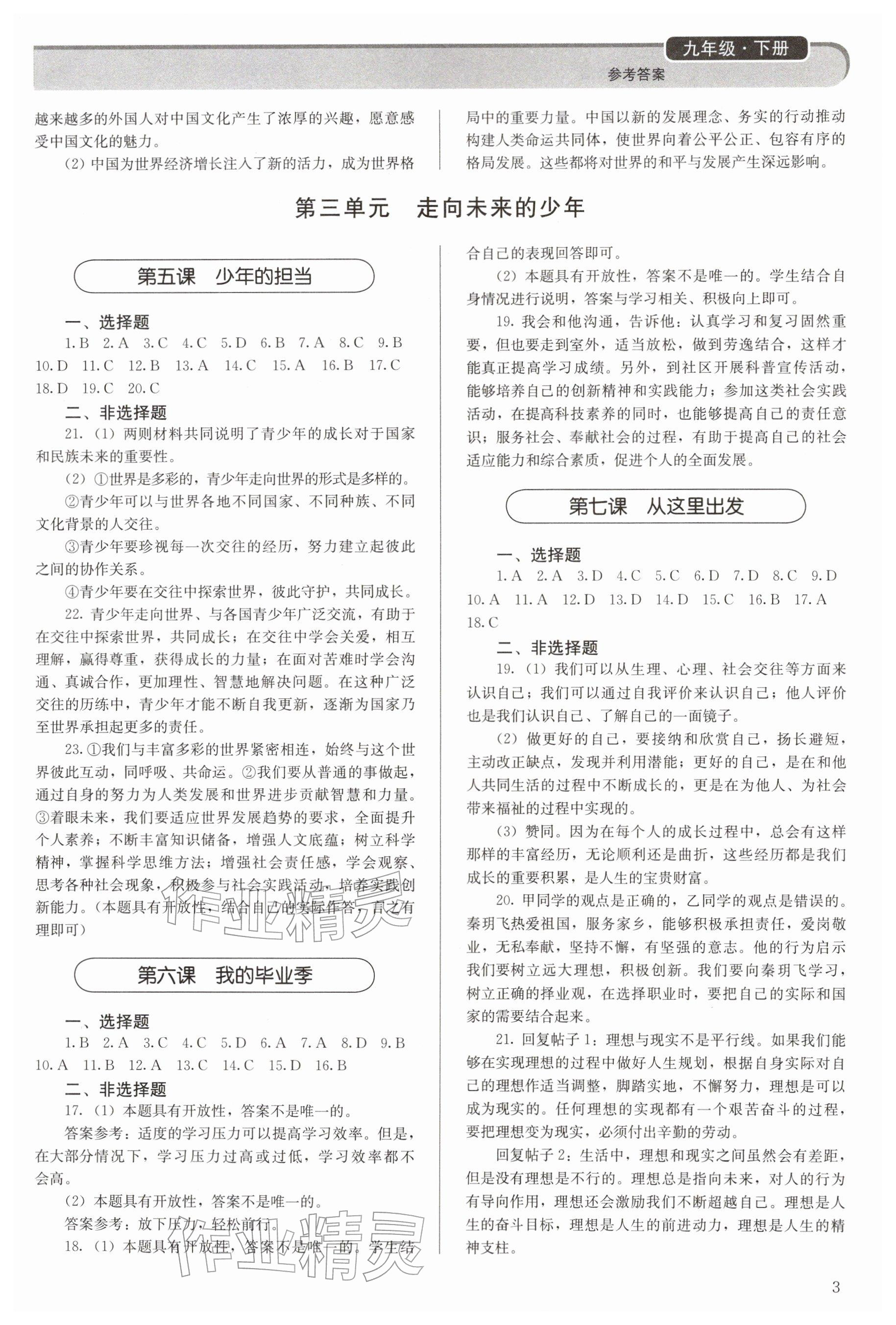 2026年补充习题九年级道德与法治下册人教版人民教育出版社参考答案第3页