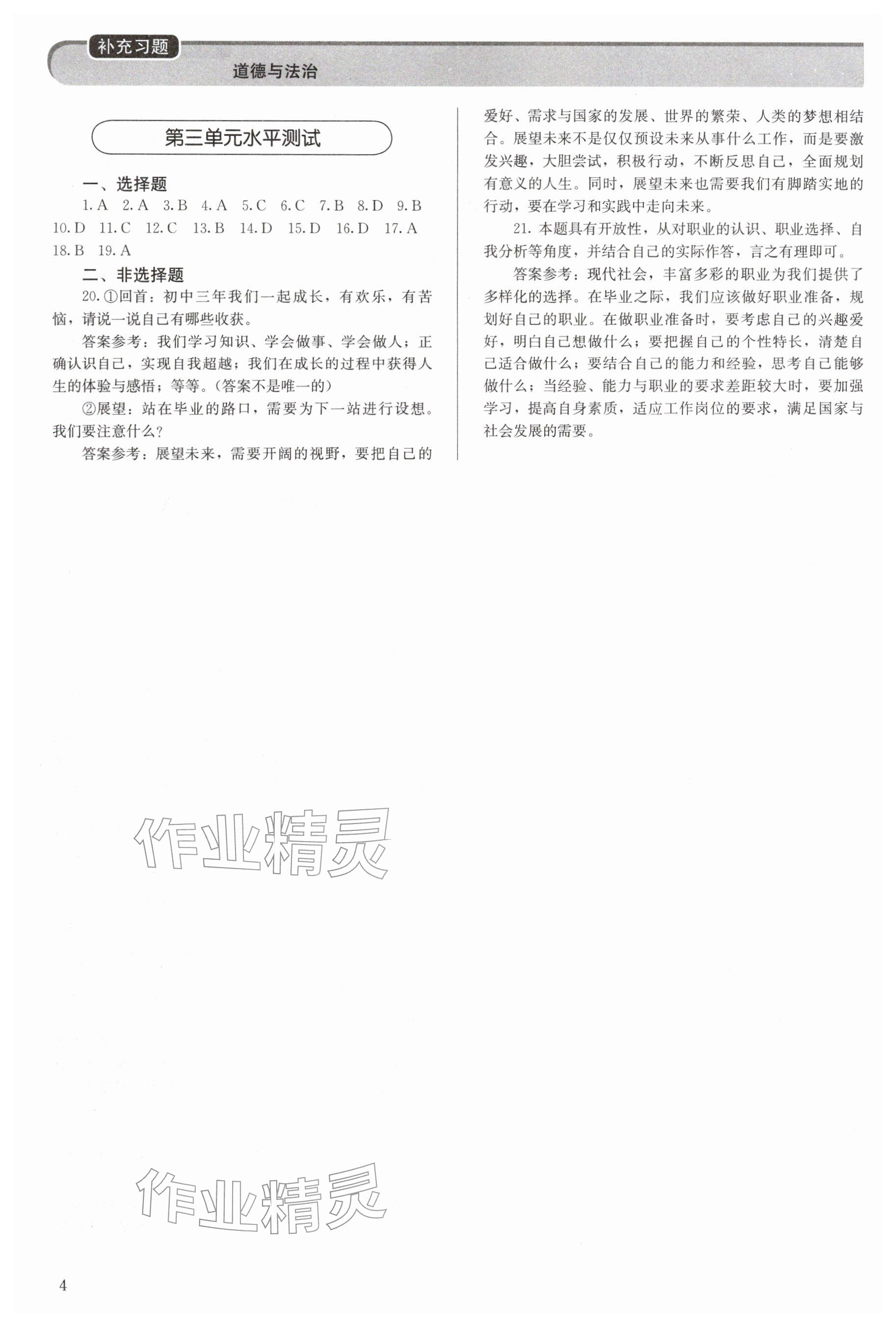 2026年补充习题九年级道德与法治下册人教版人民教育出版社参考答案第4页