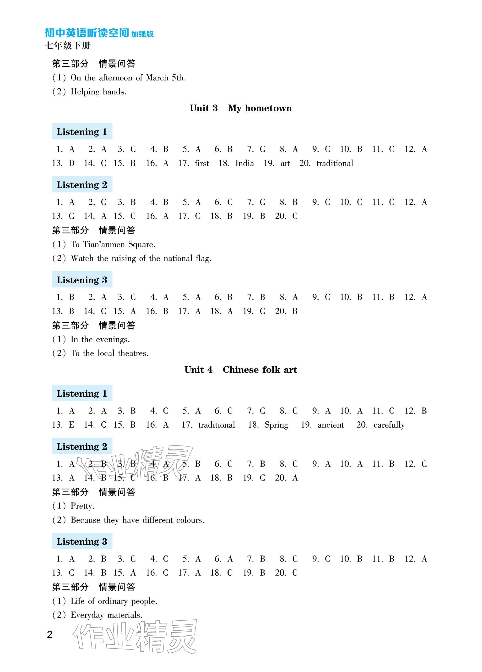 2026年英语听读空间七年级英语下册译林版加强版参考答案第2页