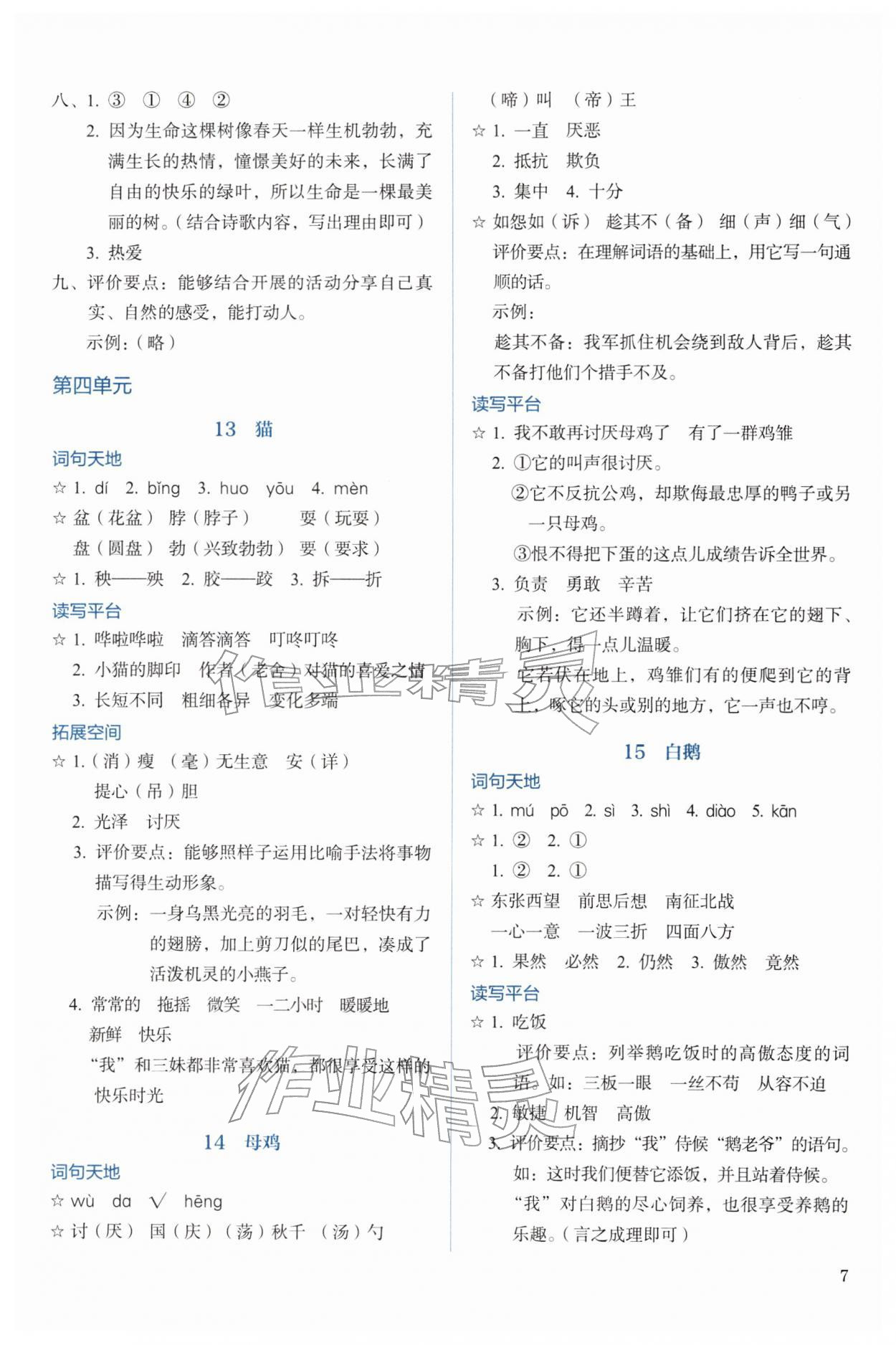 2026年人教金学典同步解析与测评四年级语文下册人教版第7页