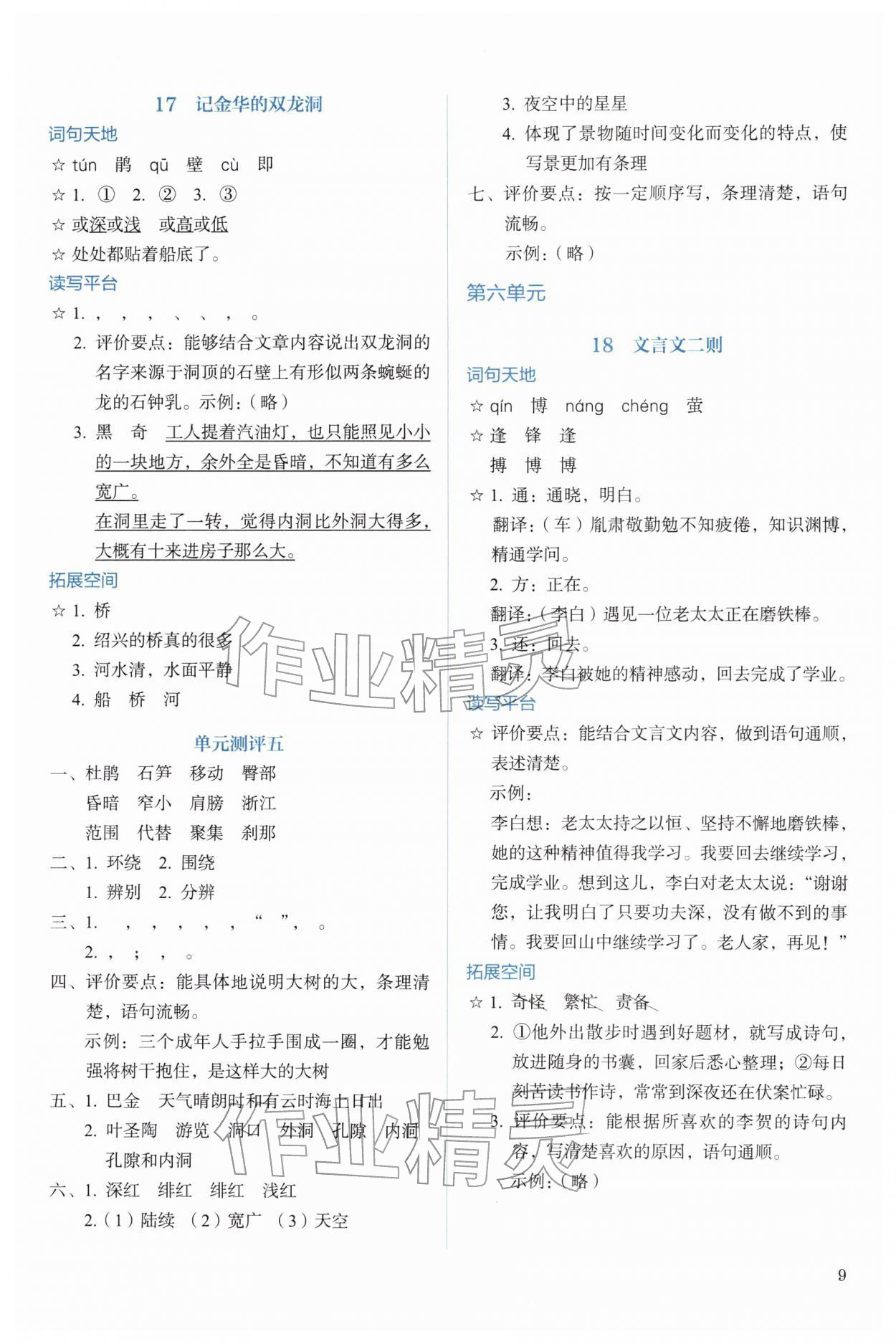 2026年人教金学典同步解析与测评四年级语文下册人教版第9页